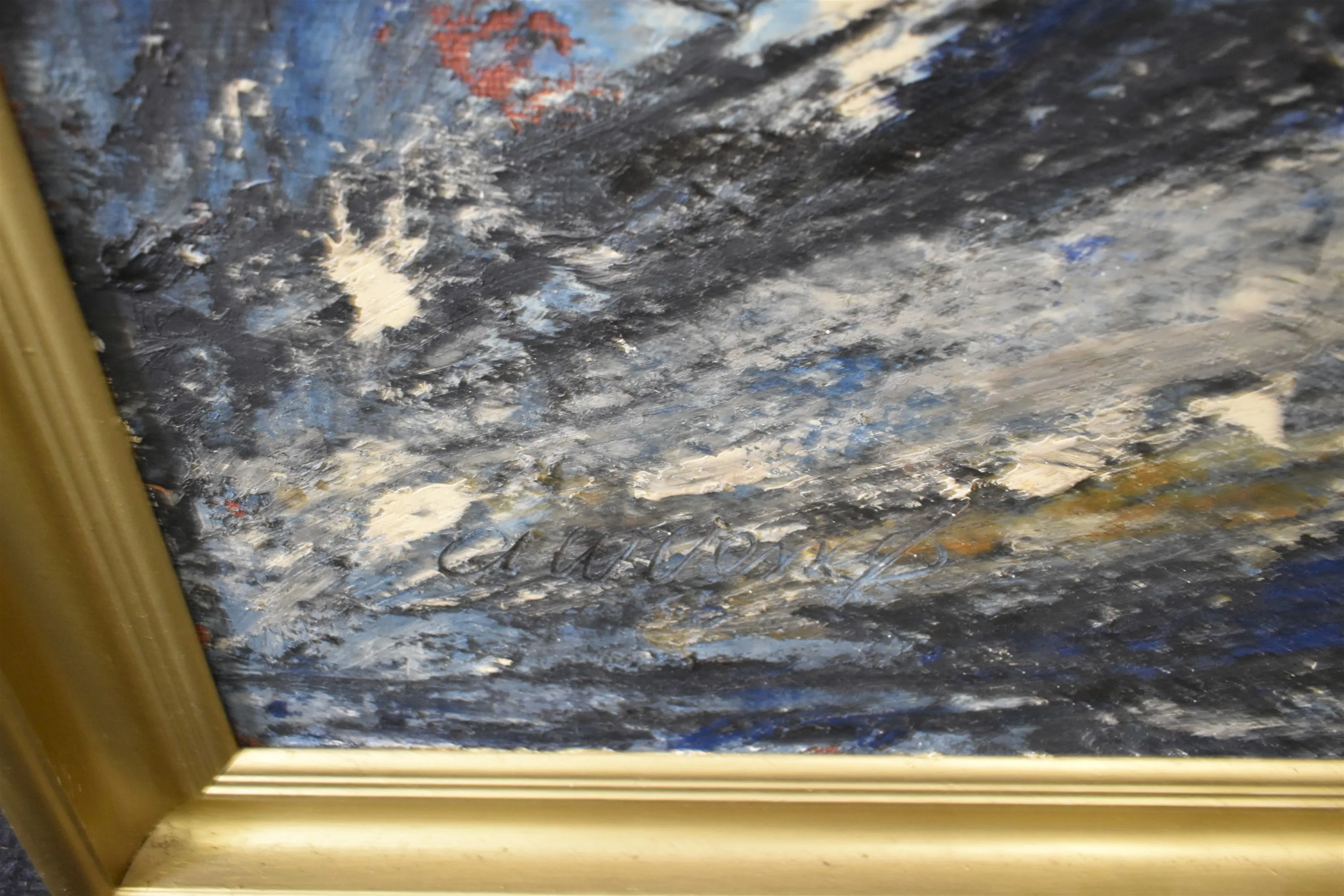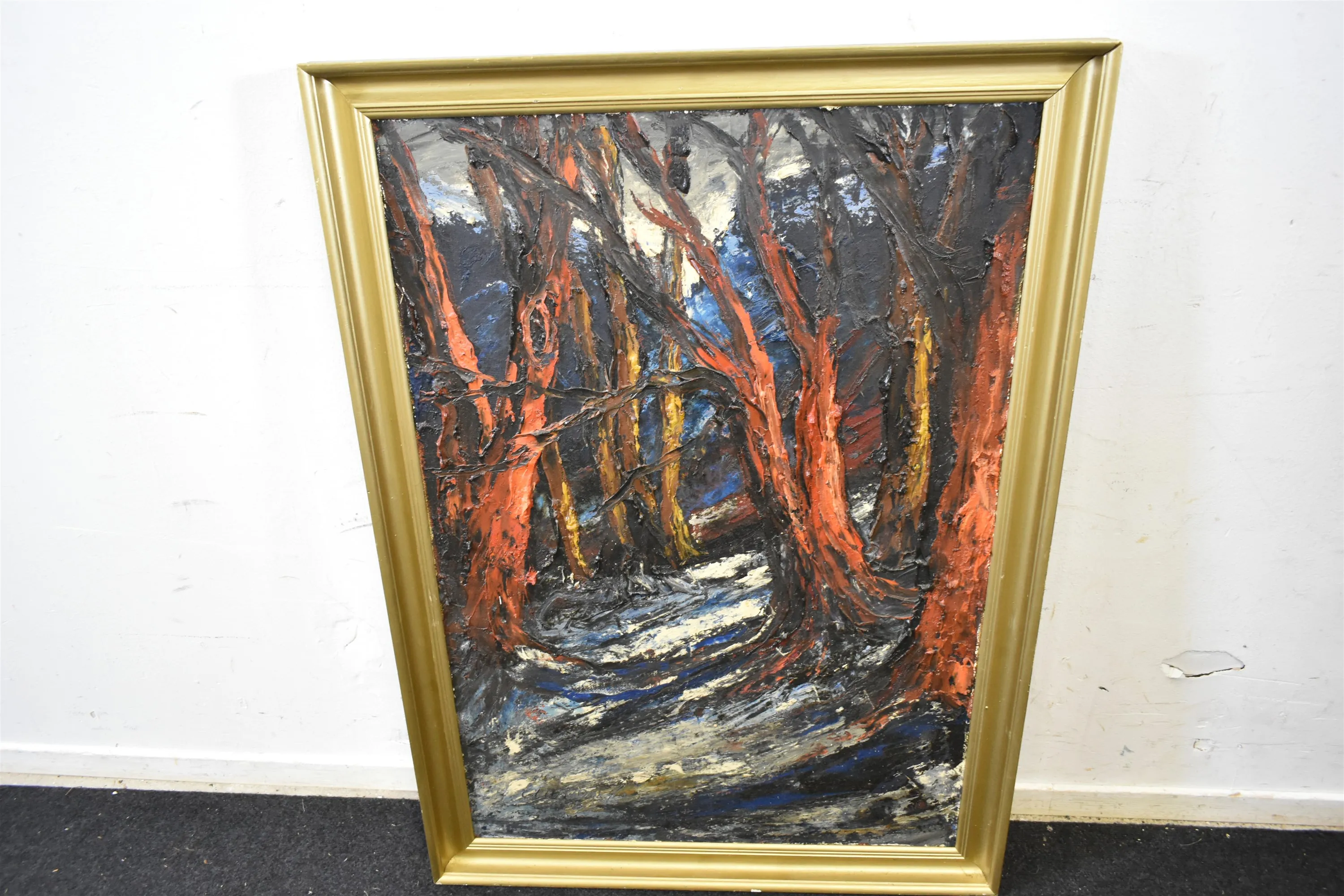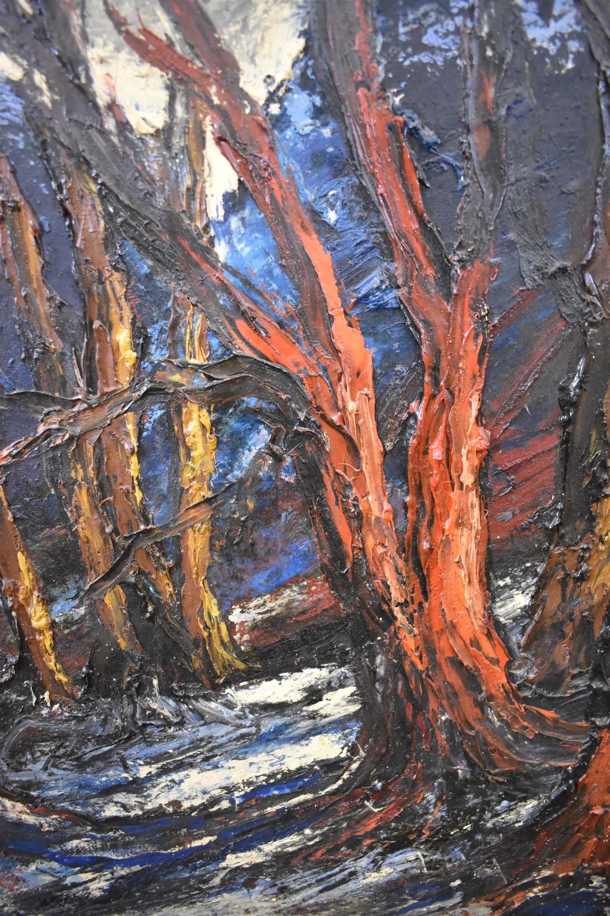 13779. Signerad olja på duk, Träd, mått 76 x 106 cm