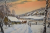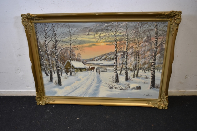 13680. Signerad olja på duk 1947, "Timmertransport" mått 90 x 130 cm