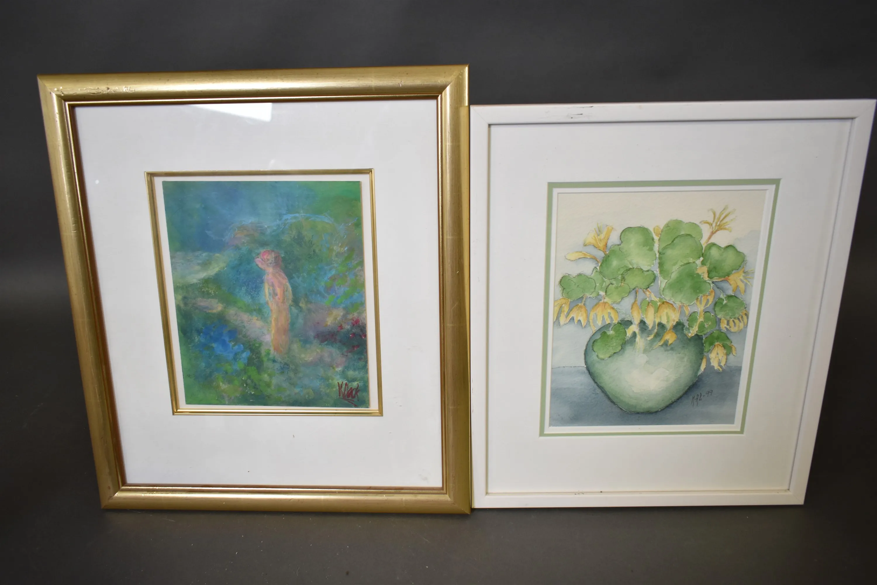 15048. Signerade akvareller 2 st största mått 41 x 45 cm
