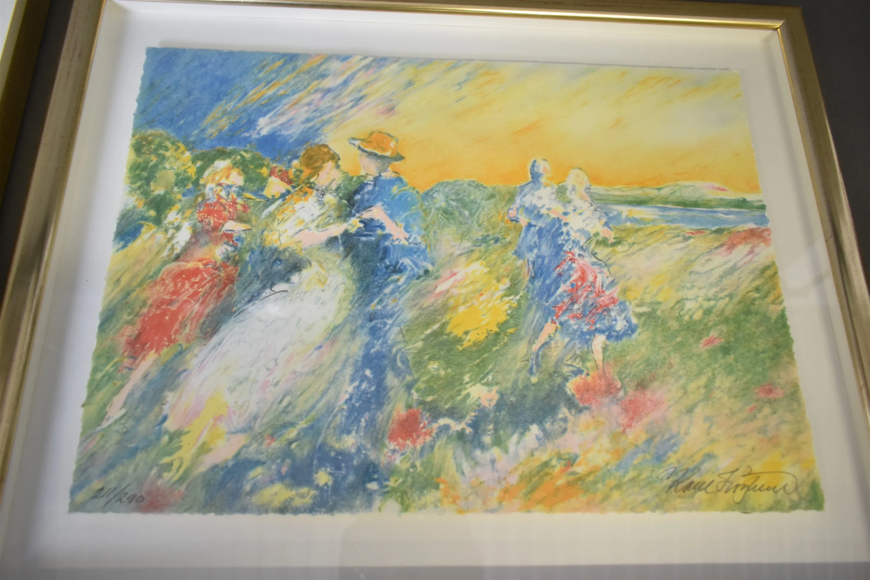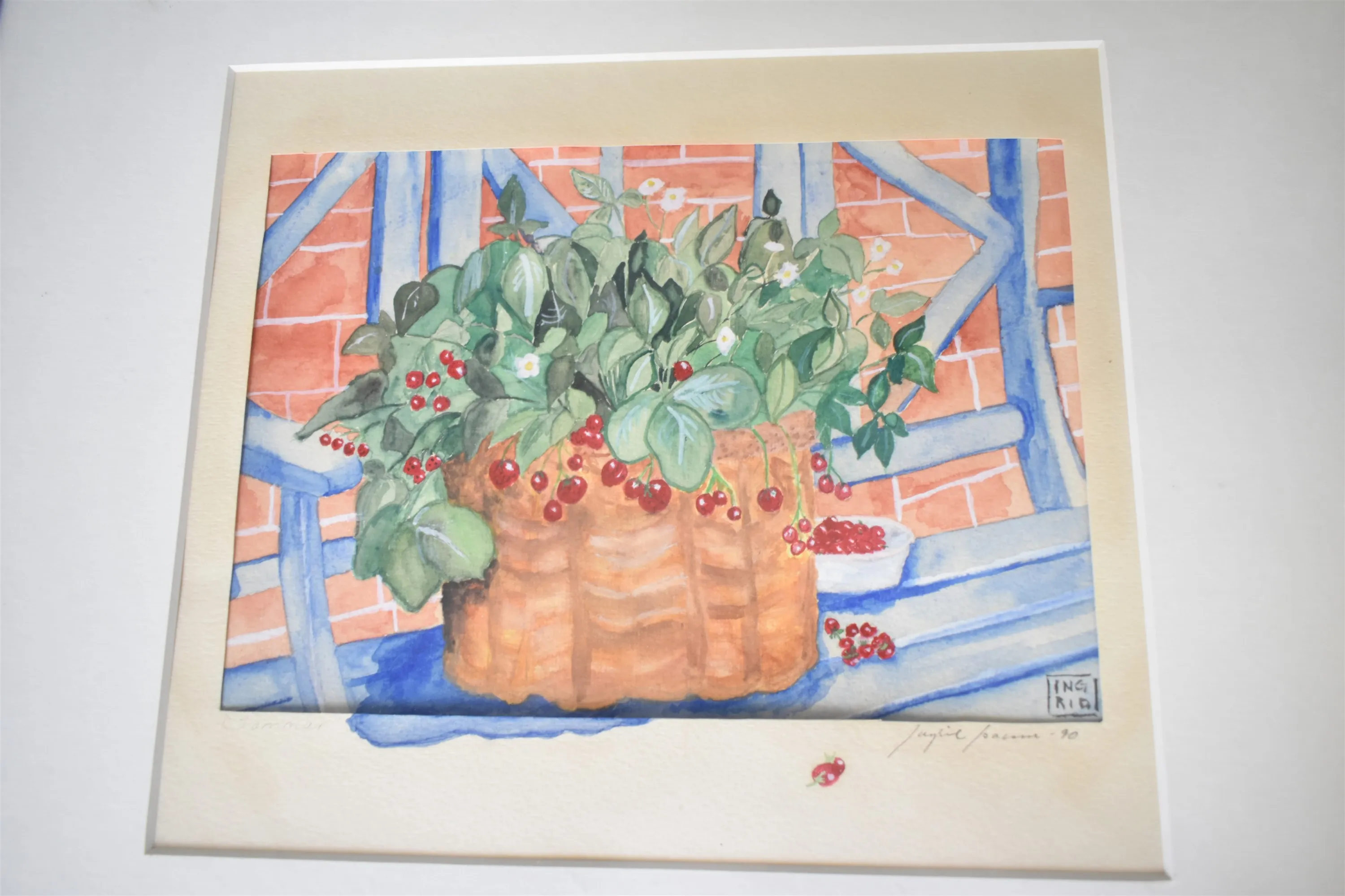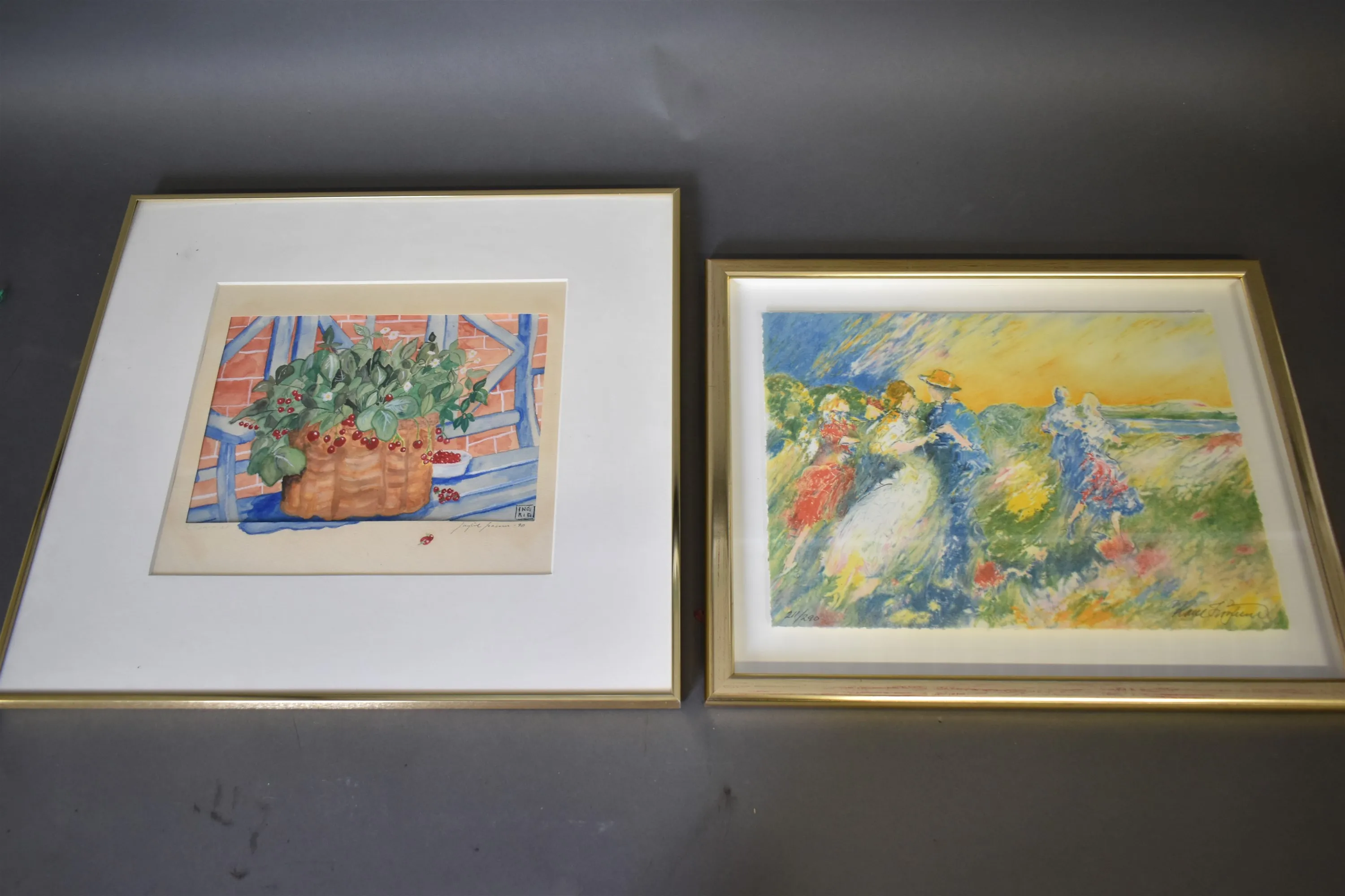 15502. Signerat litografi & Akvarell, Ingrid, största mått 48 x 53 cm