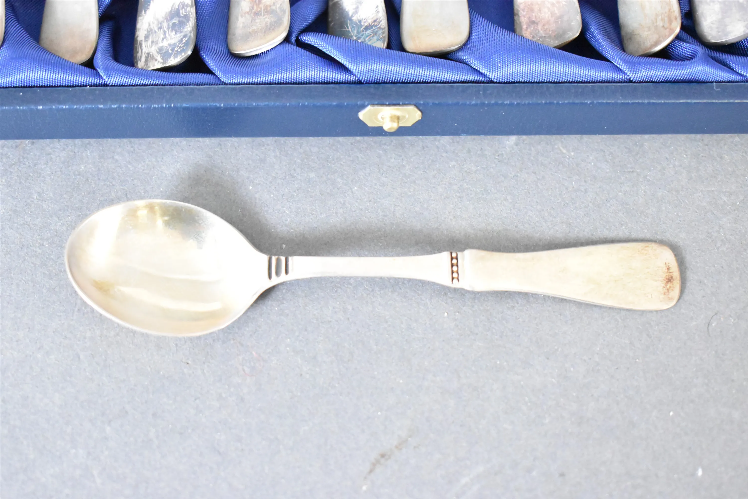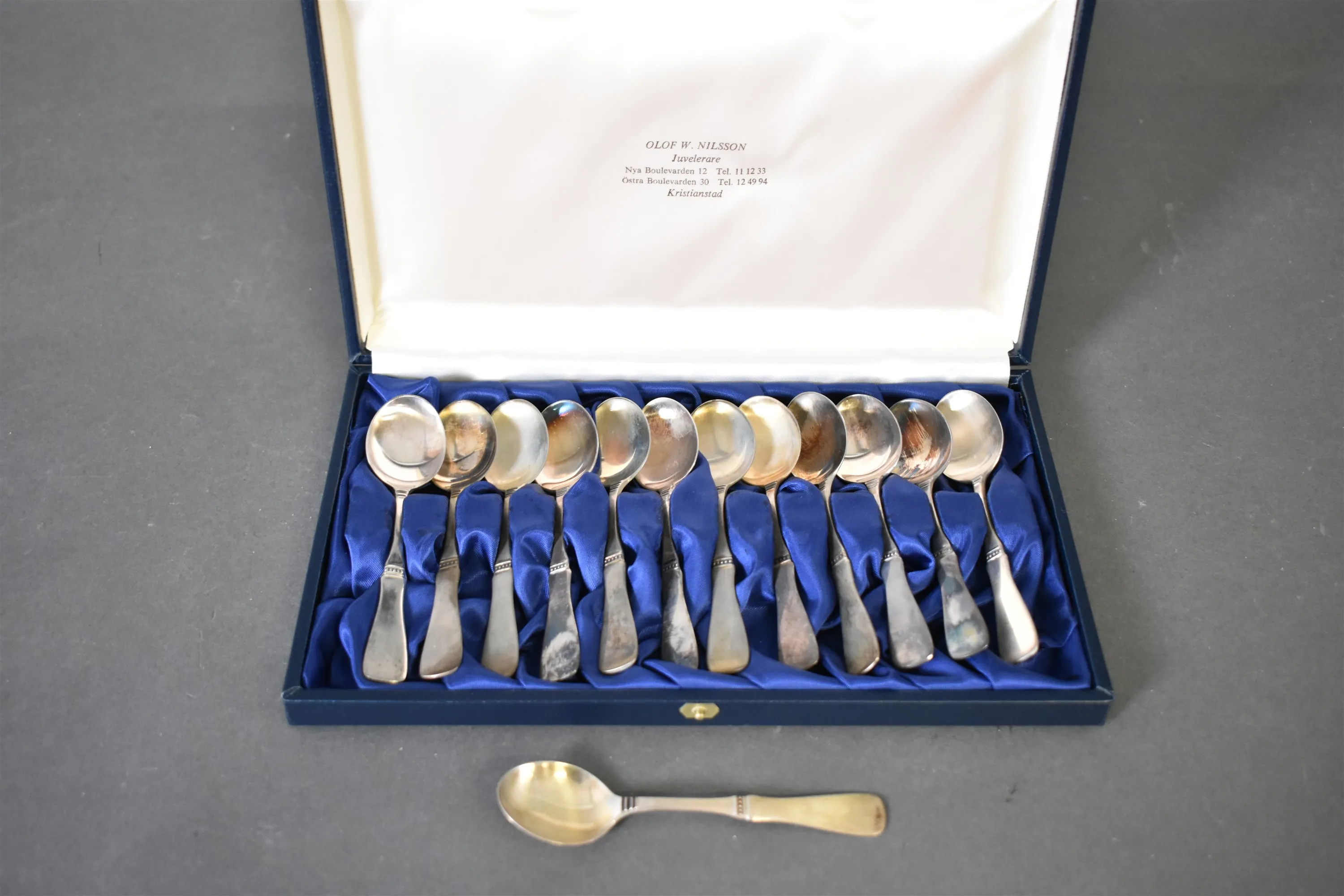 8145. Silverskedar 12 st i etui, vikt 176 gram