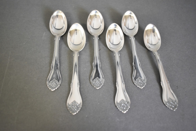 15568. Silverskedar 6 st, vikt 106 gram, längd 12 cm