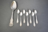 7607. Silverskedar 7 + 1 st, totalvikt 129 gram, längd 21 respektive 11 cm