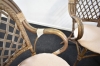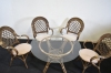 flätningen defekt på vissa ställe & utbytta mot band, höjd bord 67 cm, diameter 110 cm höjd stolar 99 cm