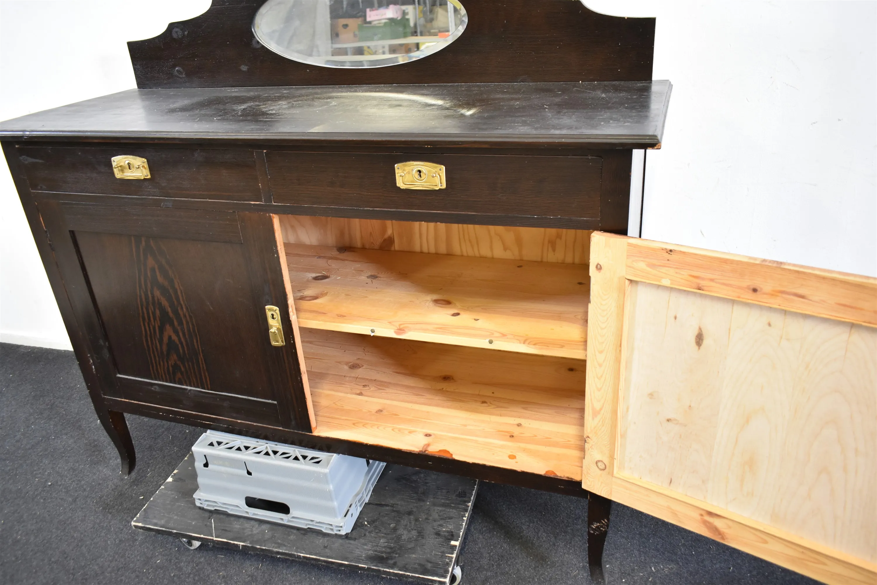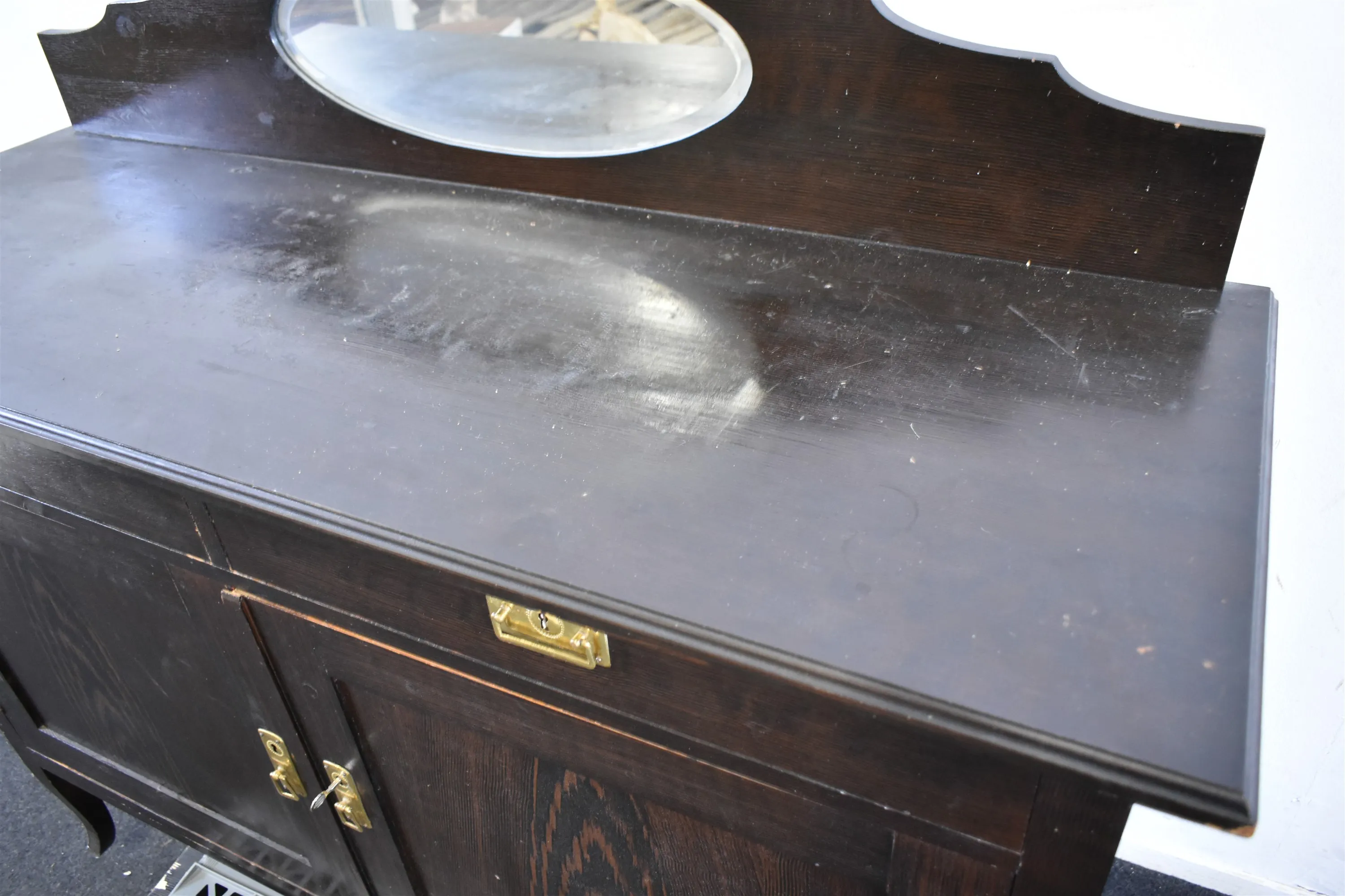 12163. Skänk med spegeldel, ek, höjd 115 cm, längd 137 cm, bredd 50 cm