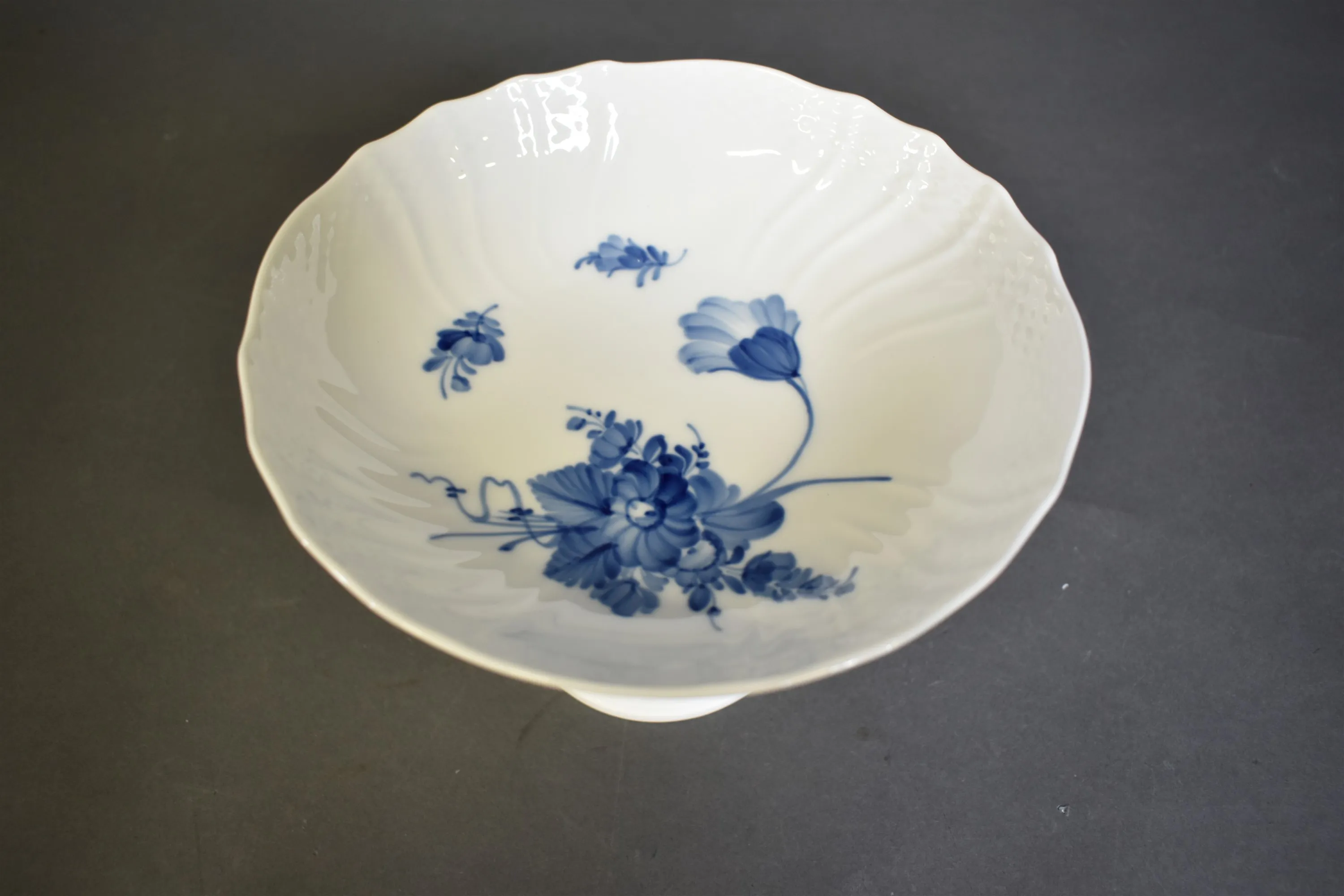 9581. Skål på fot, Kunglig Dansk Blå Blomster, 1:a sortering, höjd 15.5 cm, diameter 21.5 cm