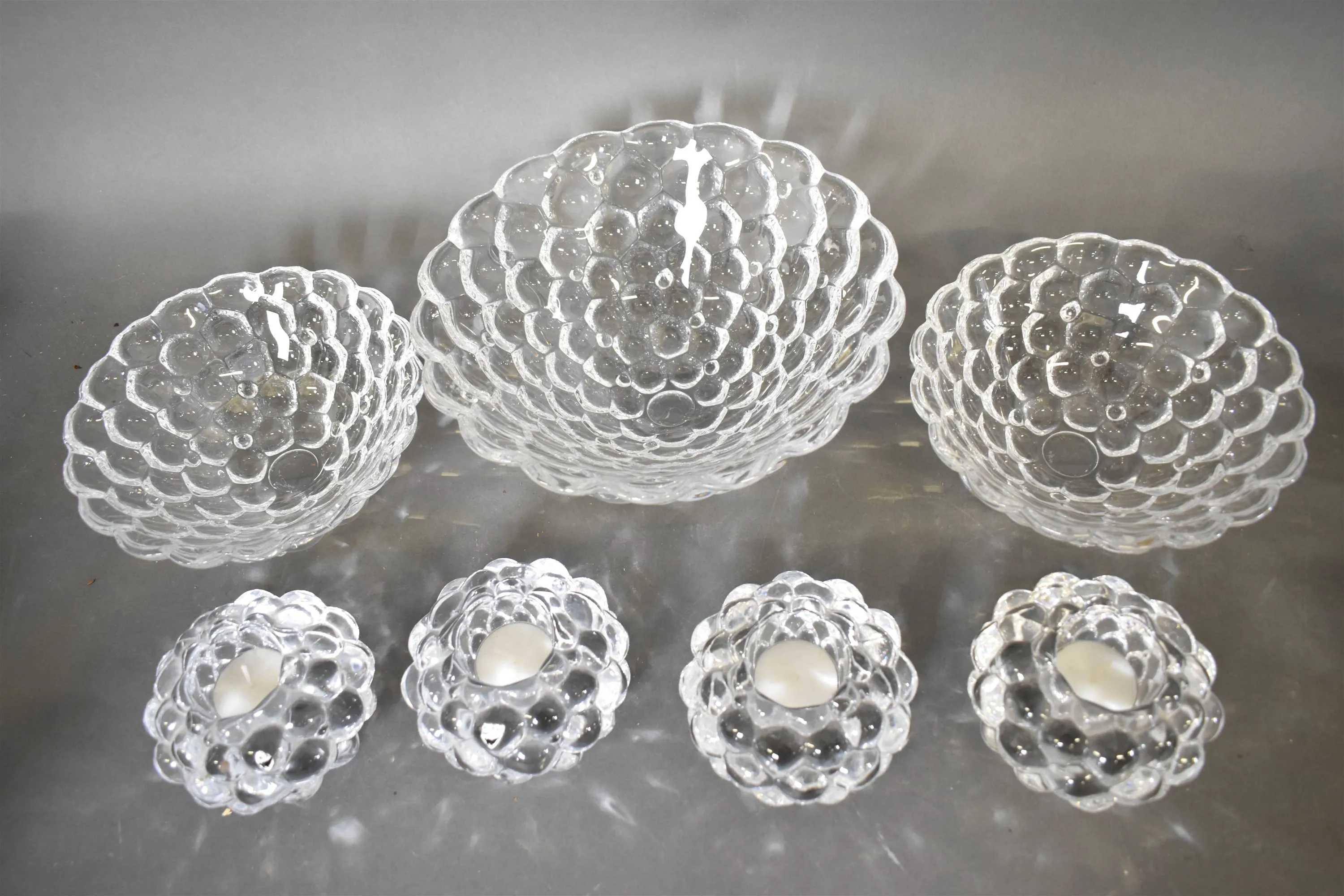 14581. Skålar & ljuslyktor, Hjortron Orrefors, största diameter, 24 cm