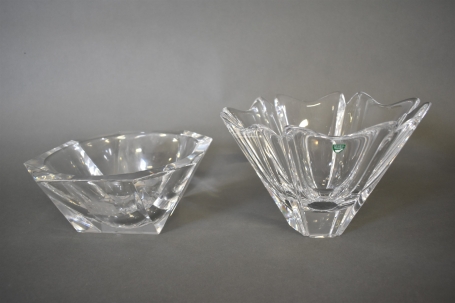 2645. Skålar 2 st Orrefors bl.a med slottsmotiv, högsta 18 cm