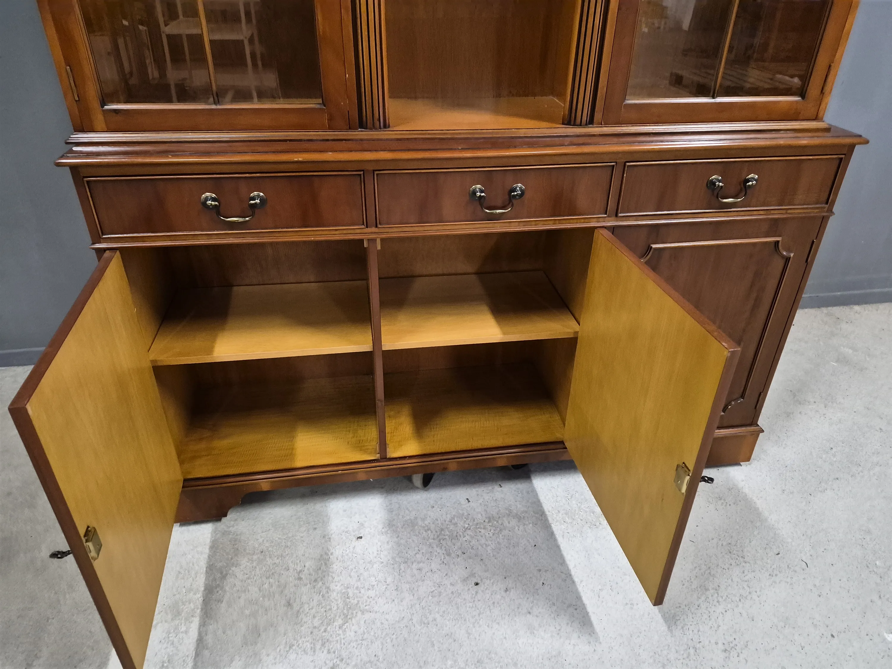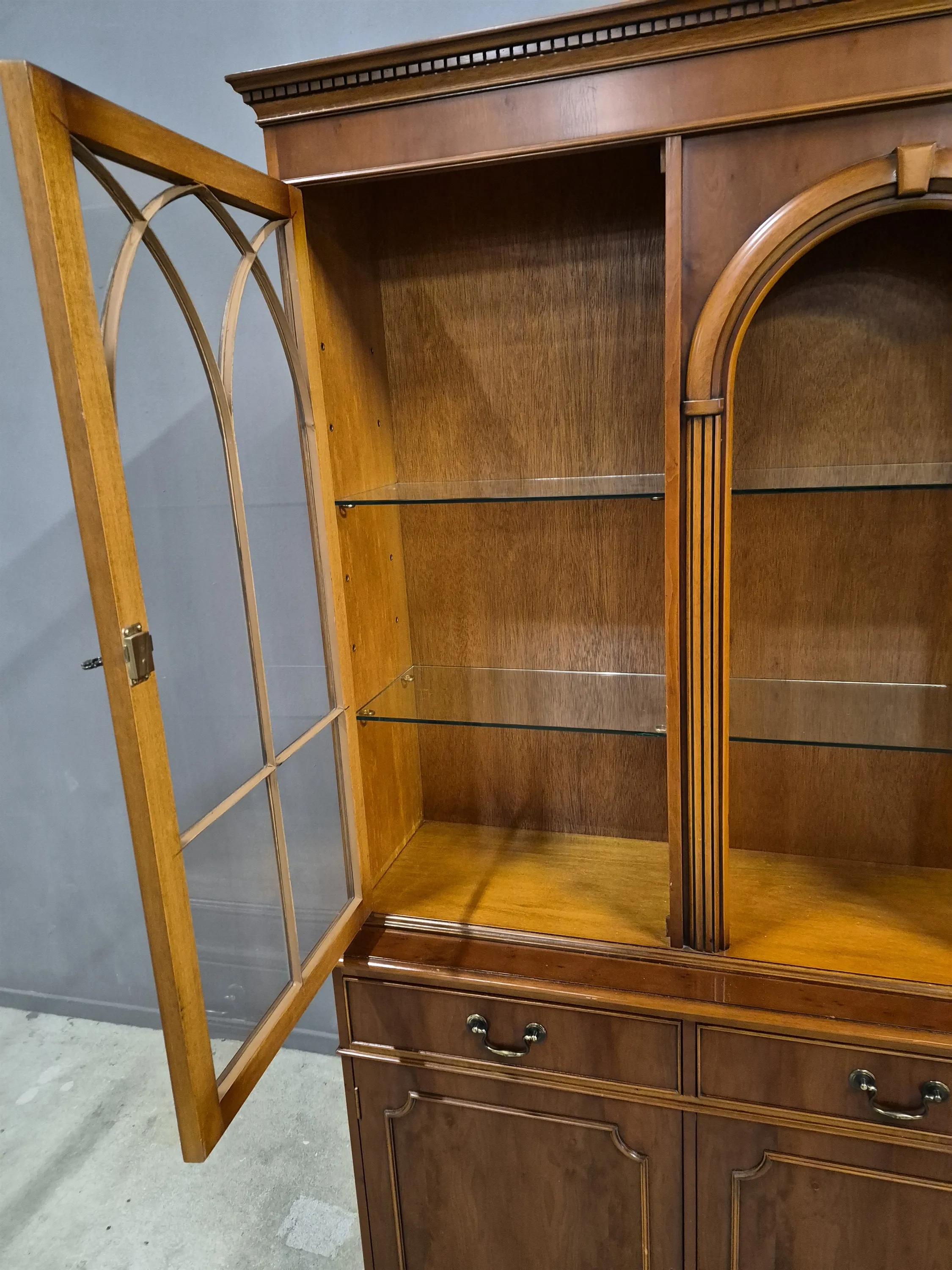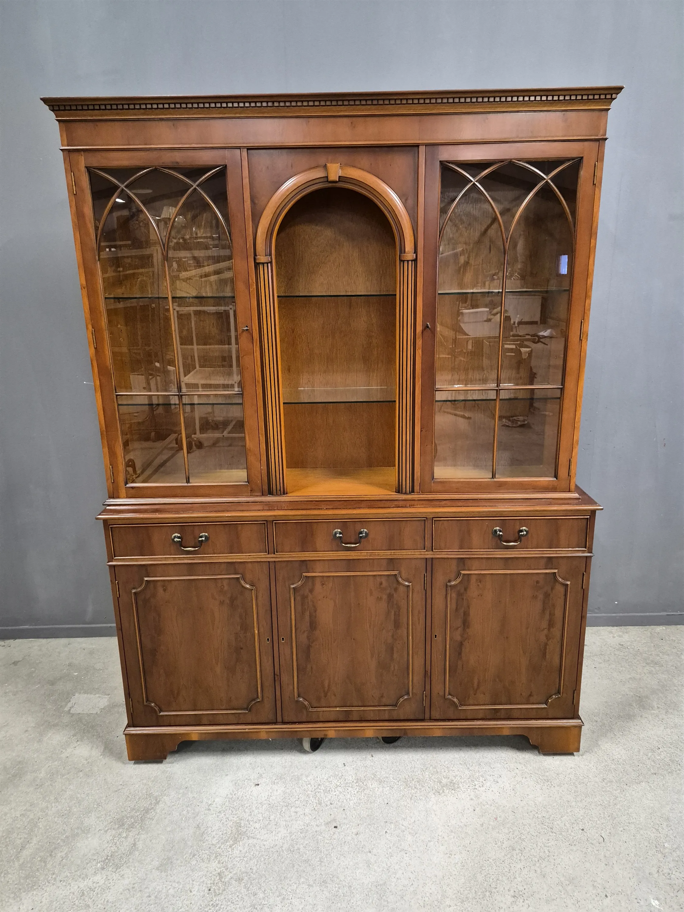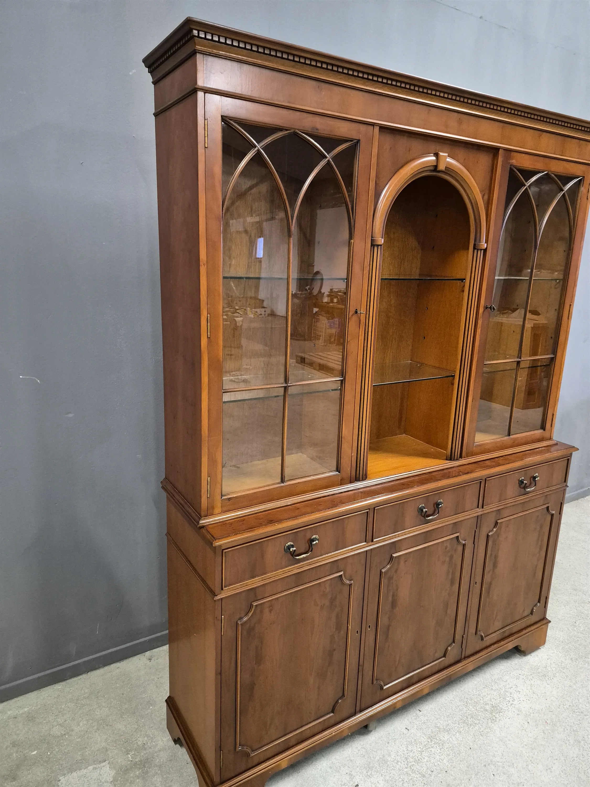 19212. Skåp med vitrinöverdel, idegran, höjd 195 cm, bredd 148 cm djup 38 cm