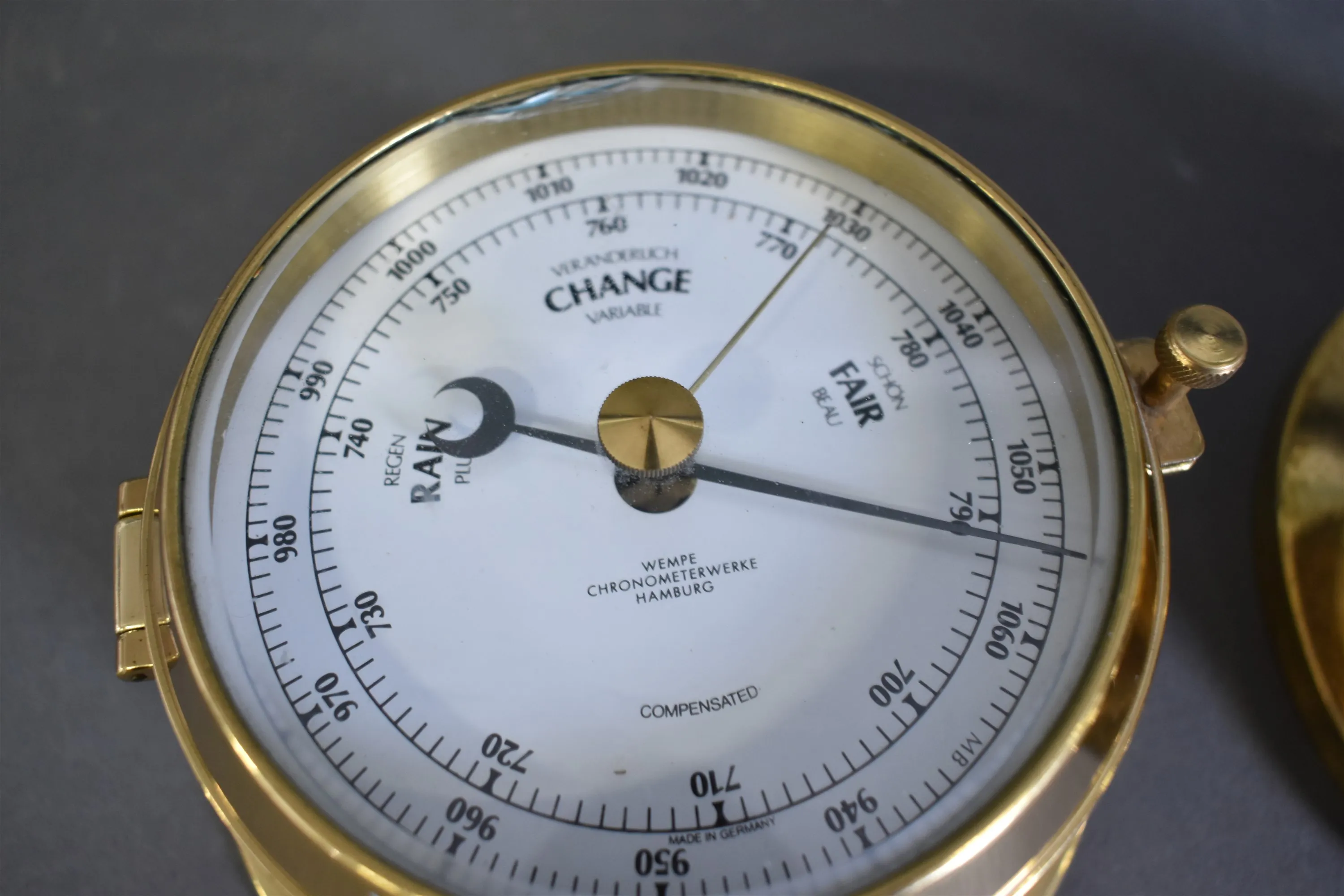 16422. Skeppsklocka och barometer, största diameter 17 cm