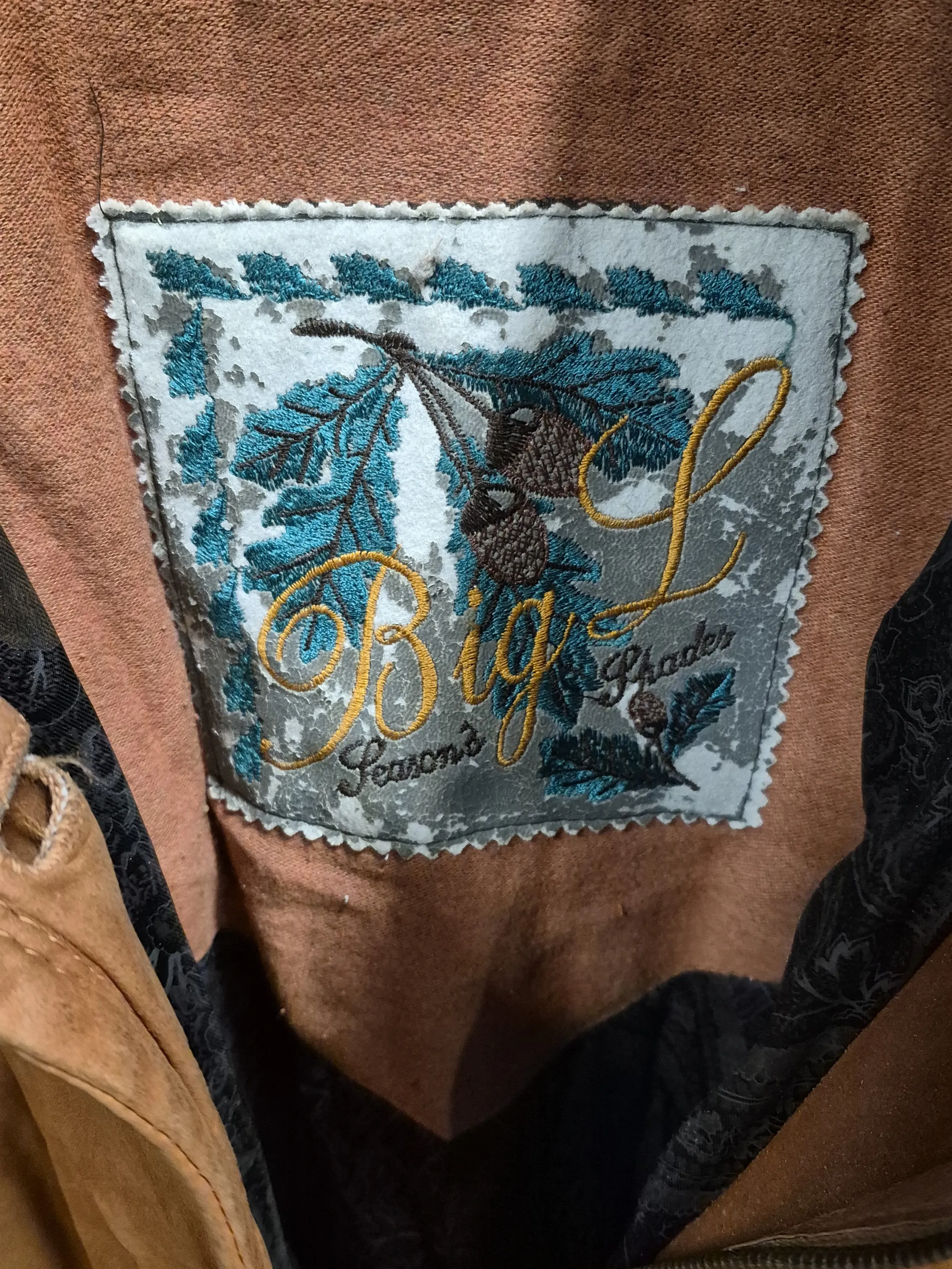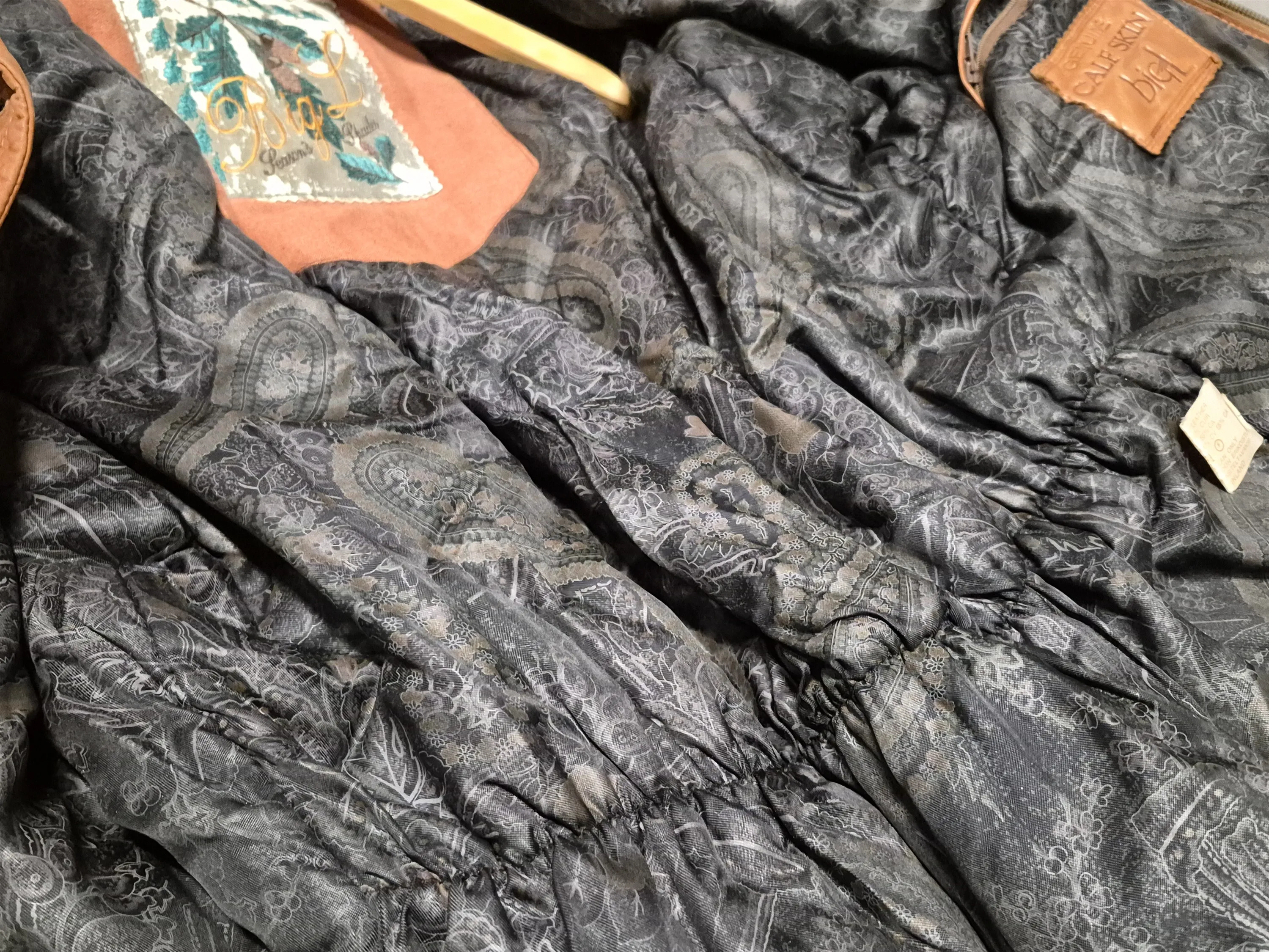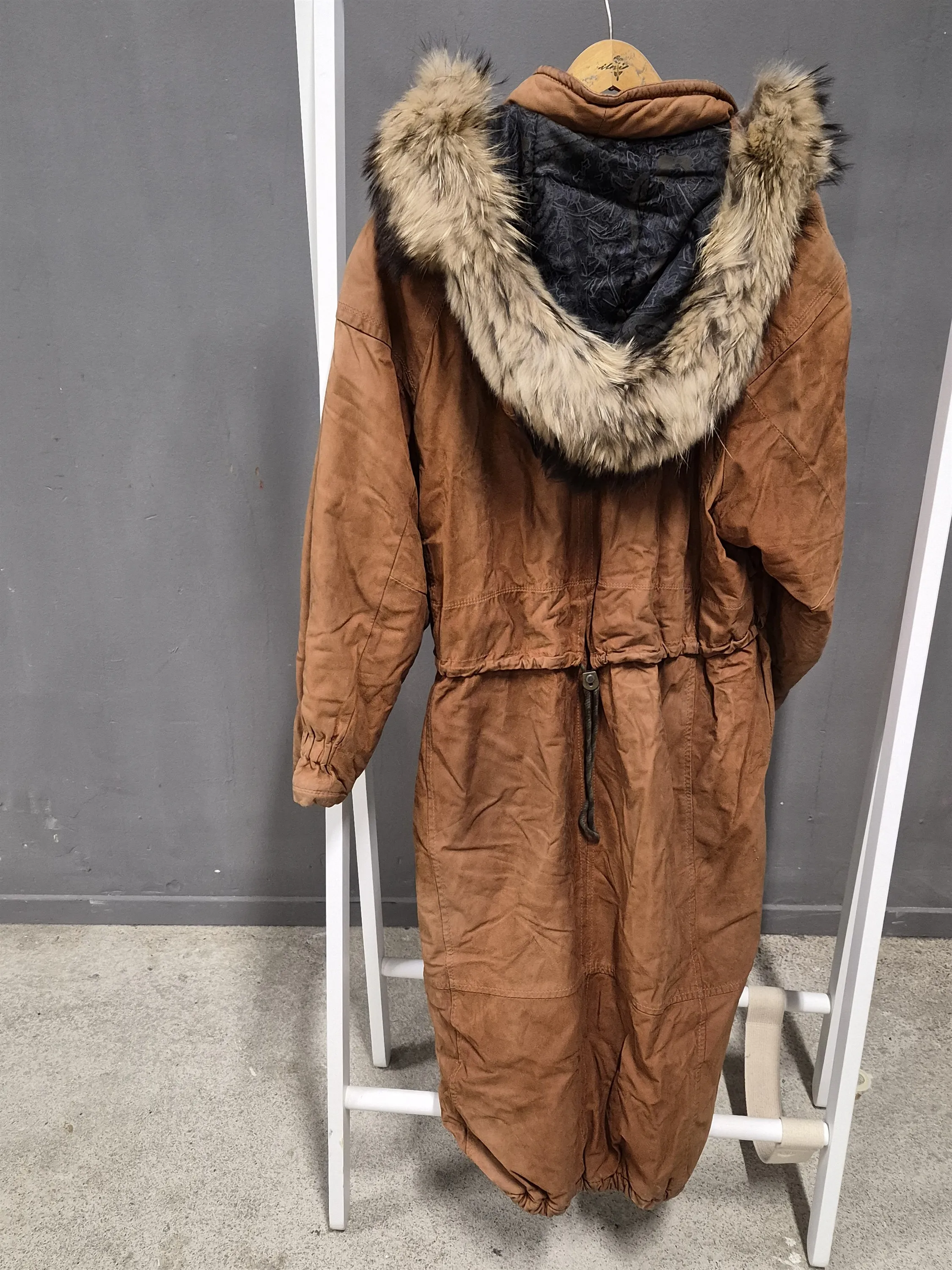 19467. Skinnkappa med huva, Big L, kalvskinn, pälsdetaljer