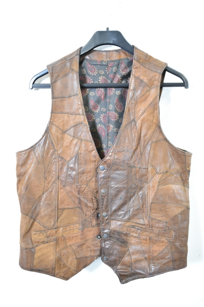 16691. Skinnväst med lappteknik, strl XL