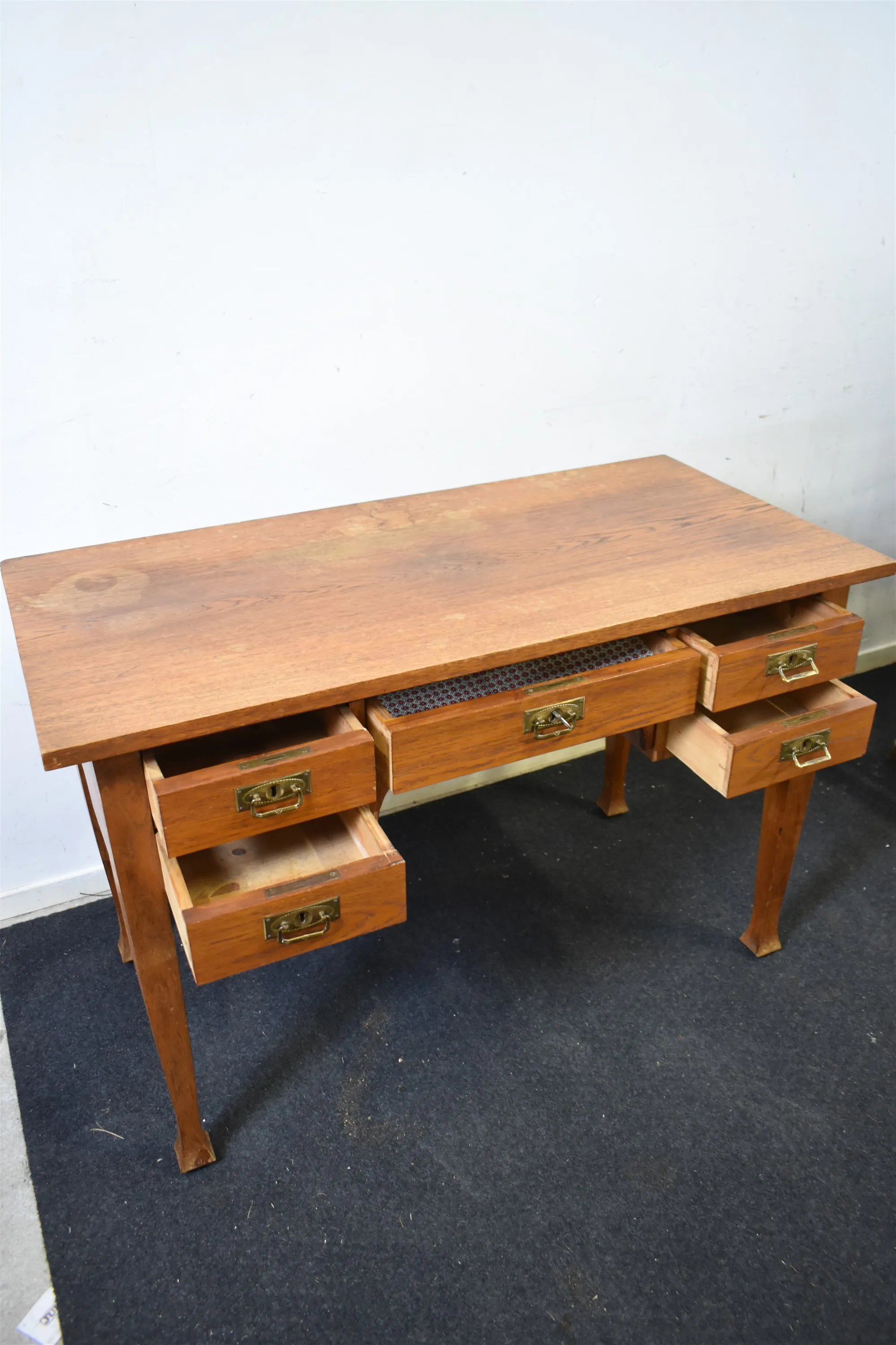 13618. Skrivbord ek, jugend, höjd 76 cm, mått 156 x 115 cm
