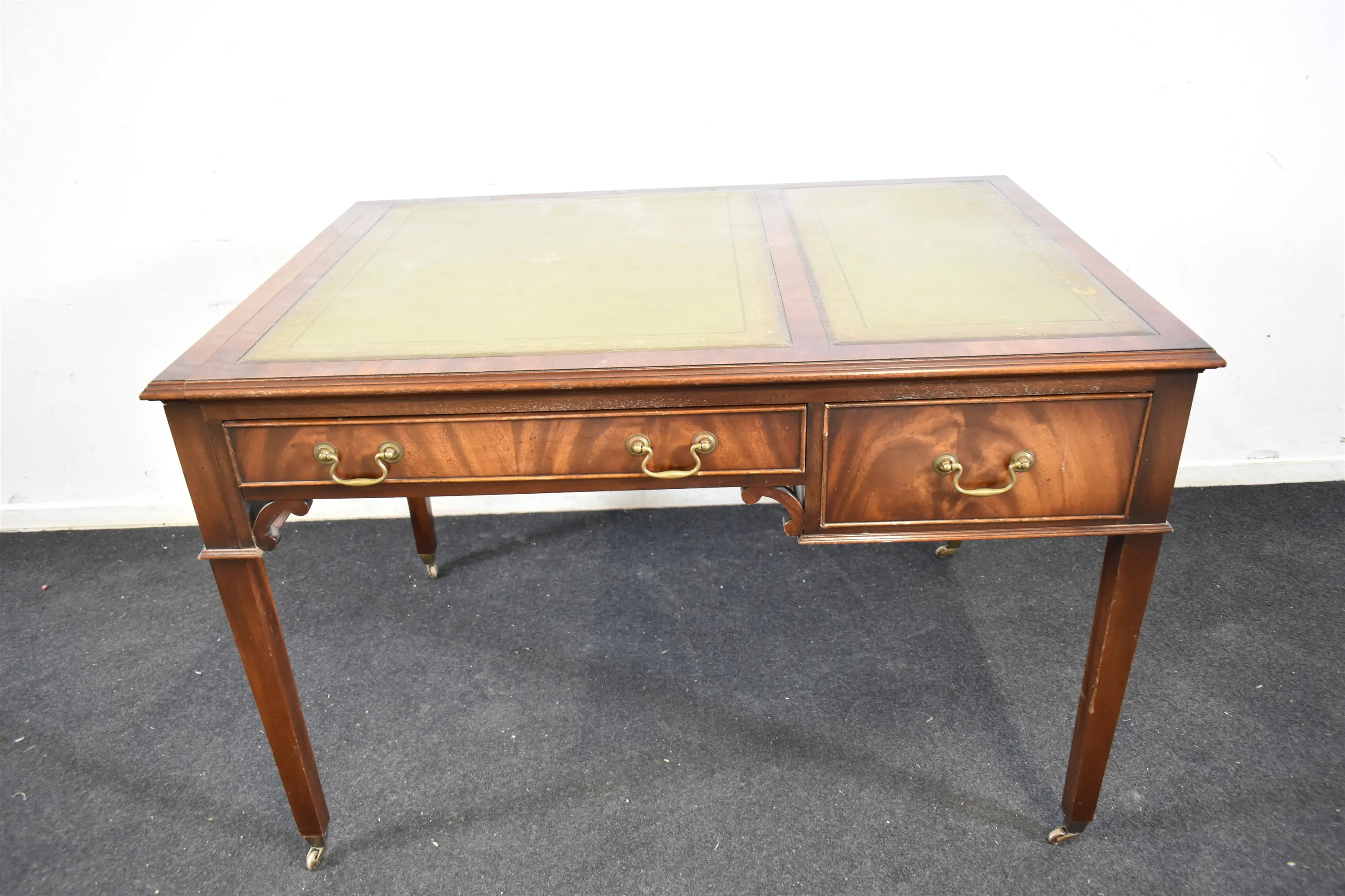 13320. Skrivbord engelsk stil, skav på skiva, höjd 77 cm, längd 113 cm, bredd 80 cm