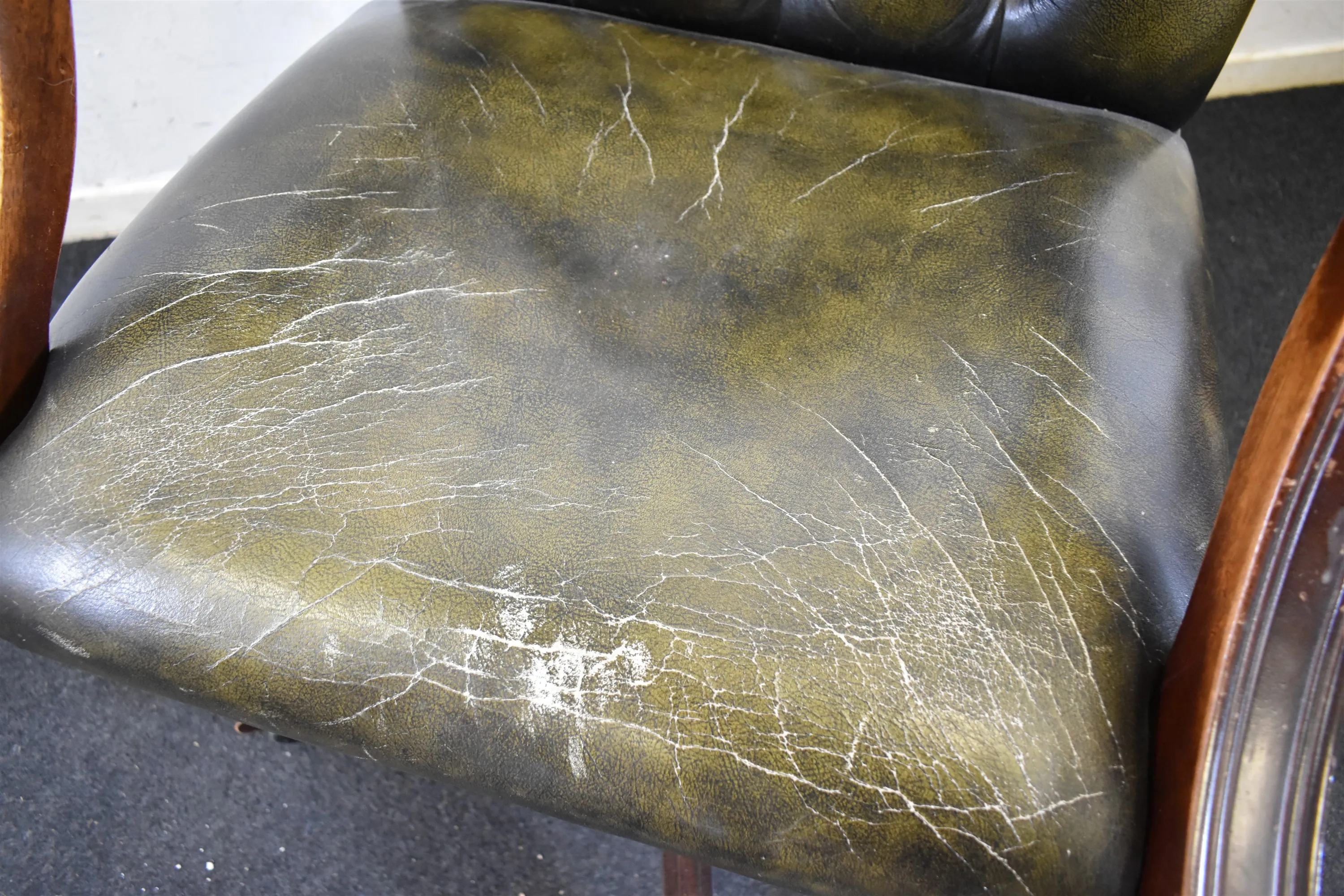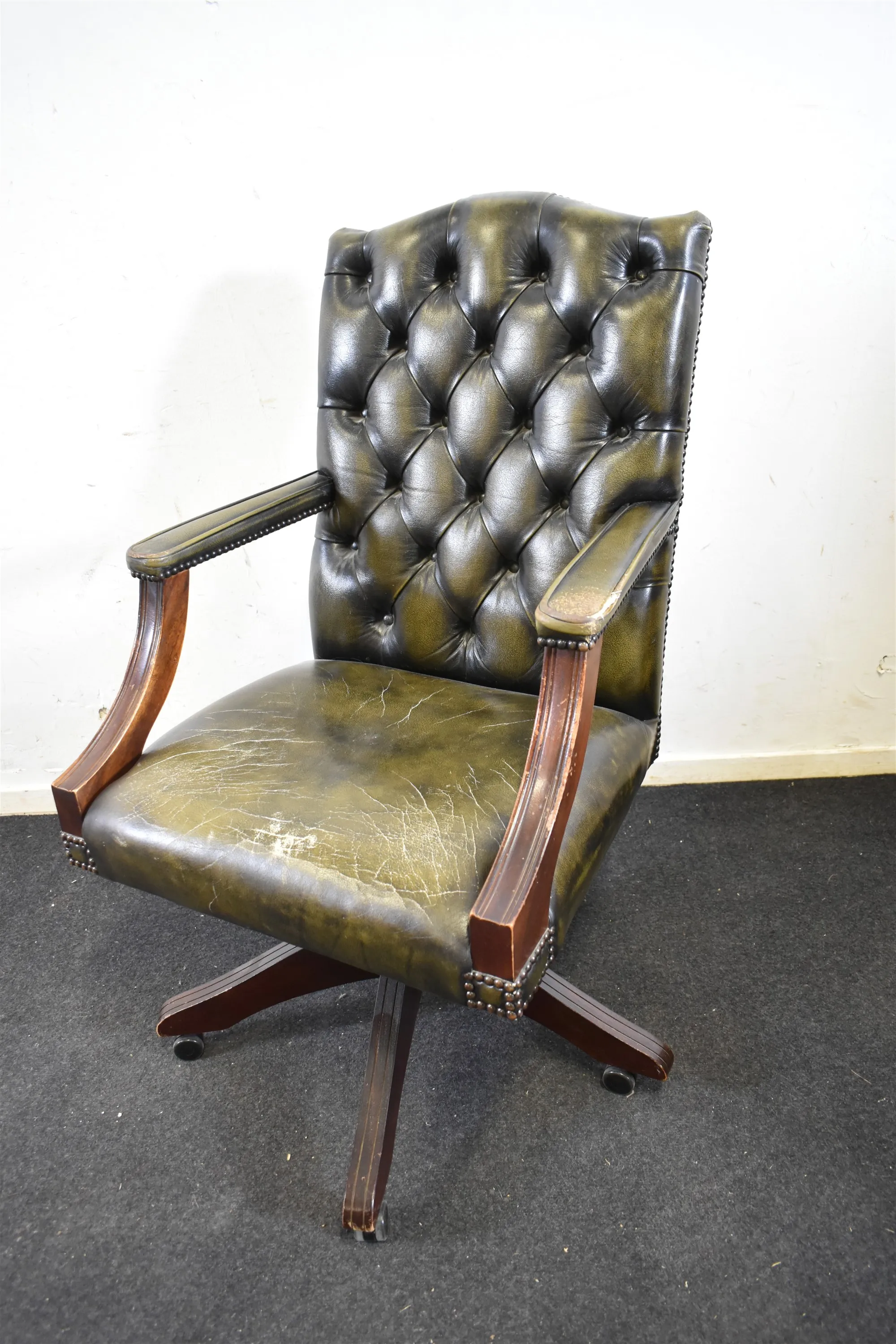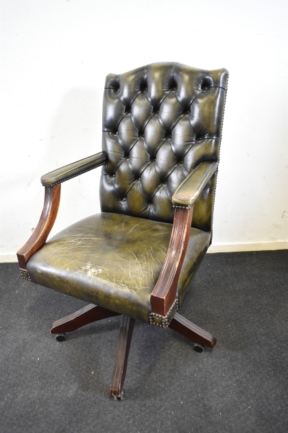 13357. Skrivbordsstol, engelsk stil, skinn, skav finns, höjd 90 cm