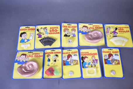 4739. Skämtartiklar Kärnan äldre, största kartong 18 x 18 cm