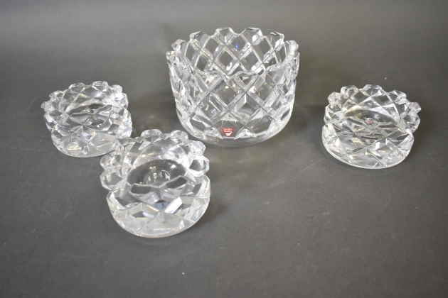 16209. Skål & ljusstakar 3 st, "Sofiero" Gunnar Cyrén Orrefors högsta 11 cm