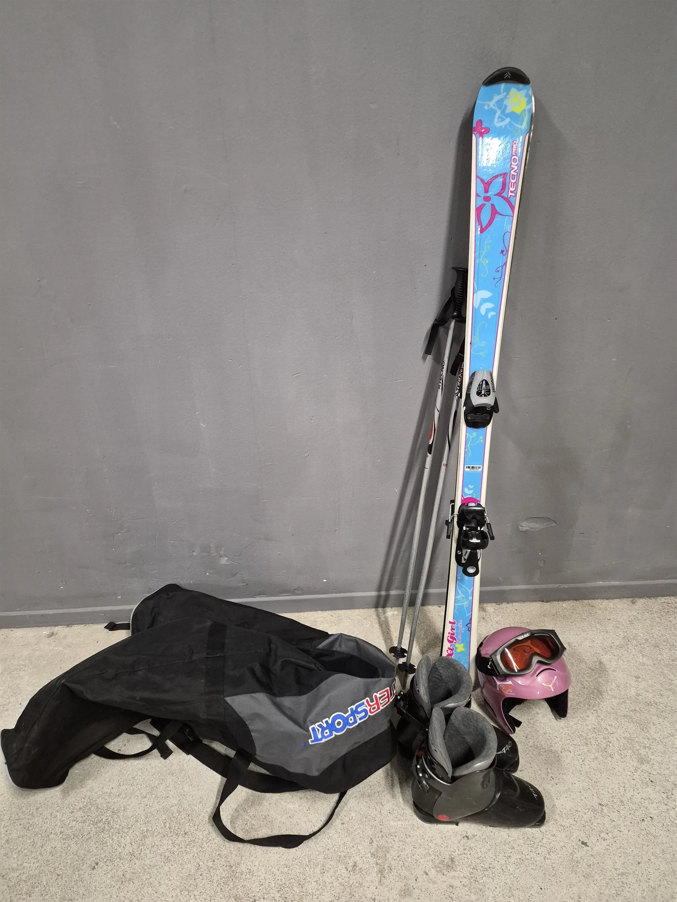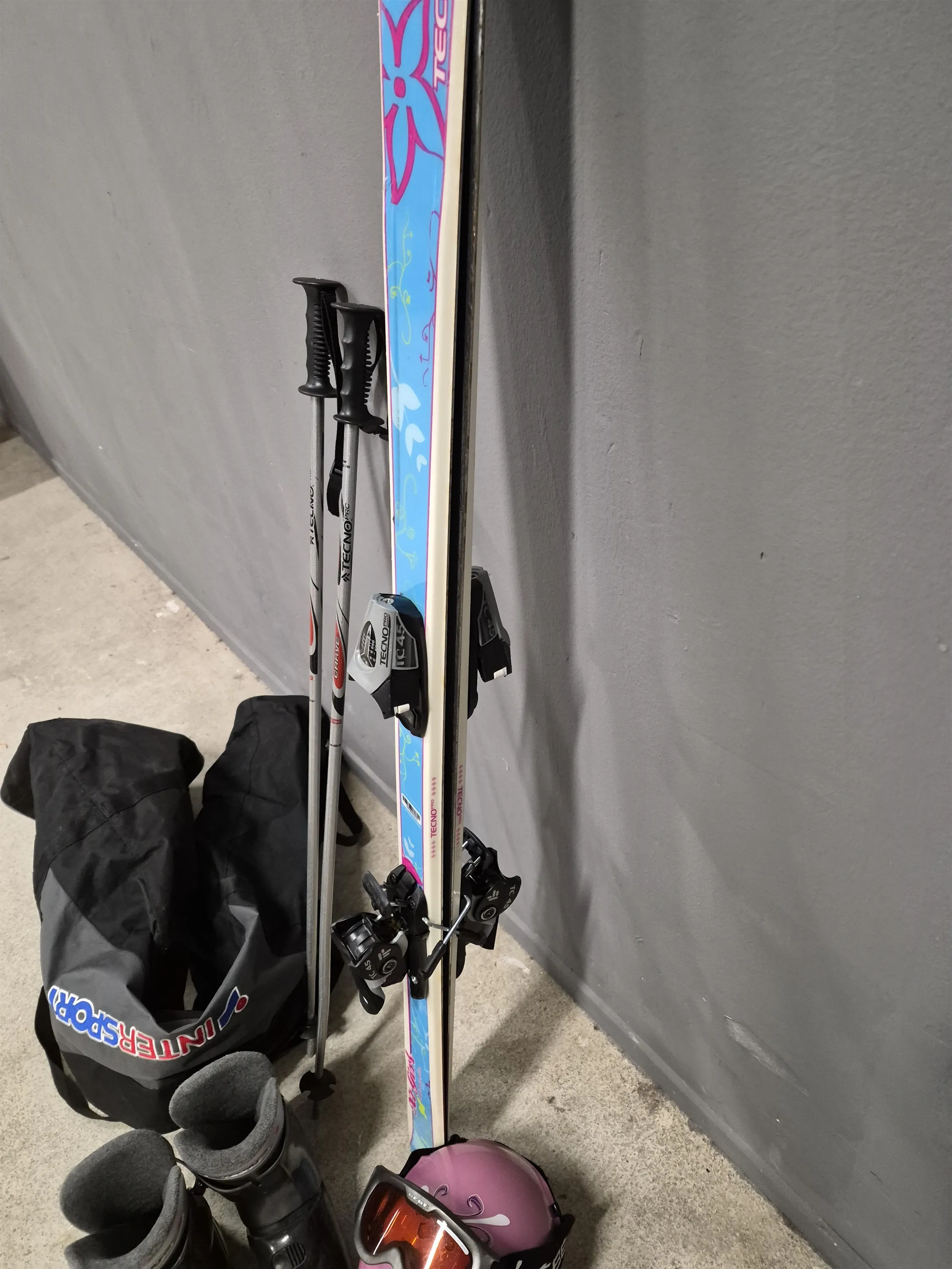 18431. Slalomskidor Tecno Pro, barn, med hjälm och pjäxor, längd på skidor 138 cm