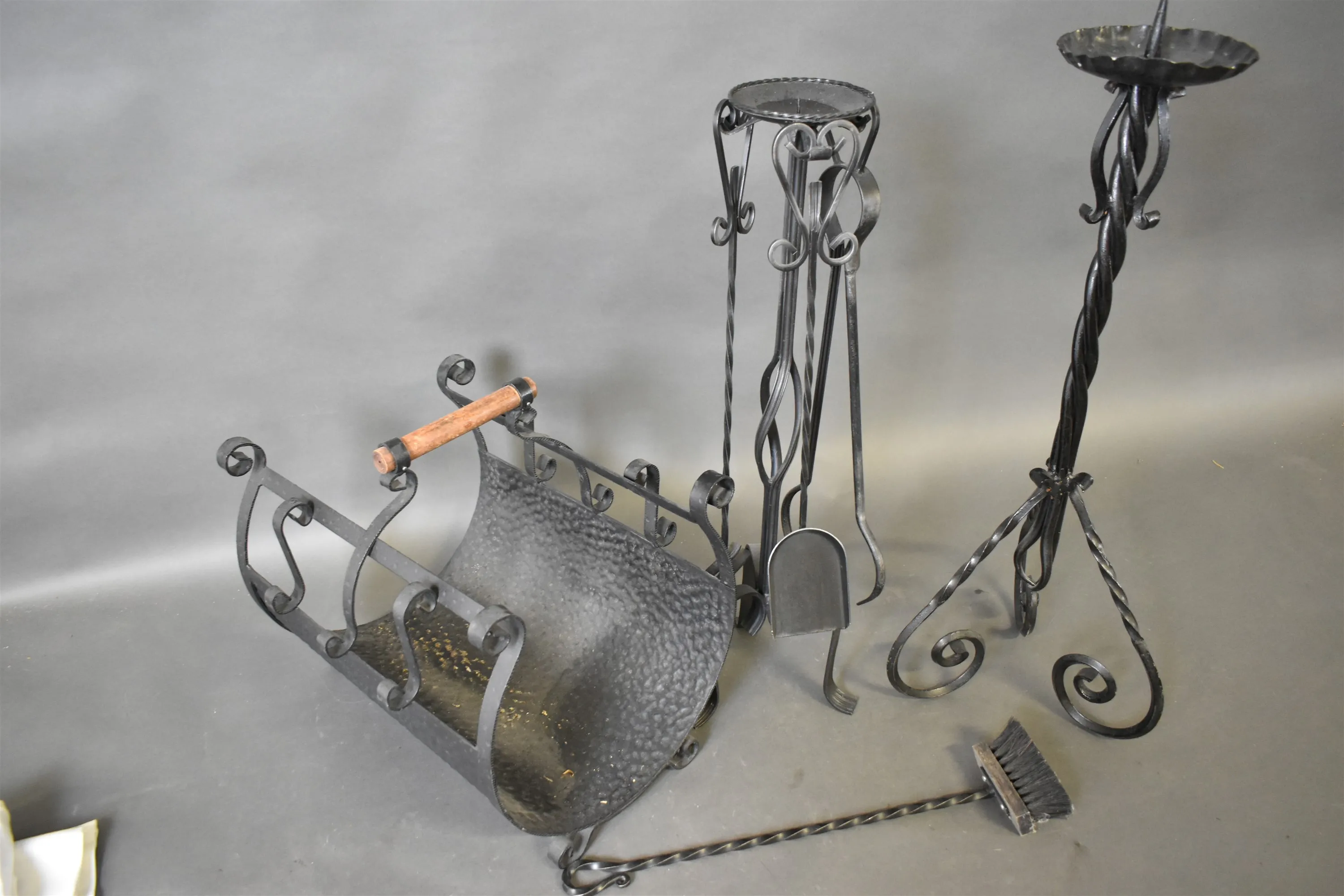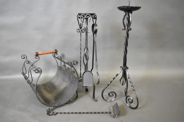 16302. Smide, vedhämtare, ljusstakar eldset, högsta 80 cm