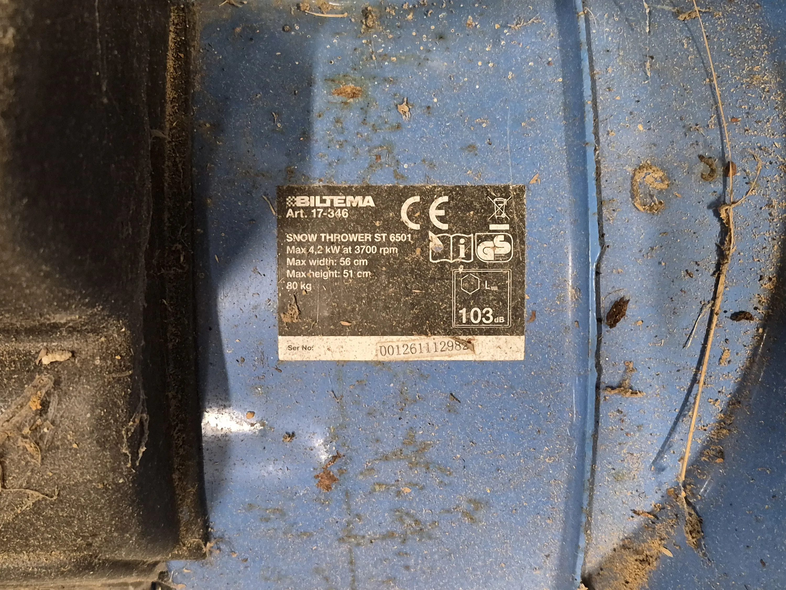 19976. Snöslunga Biltema, ST 6501, 6 hk bensin, längd 145 cm