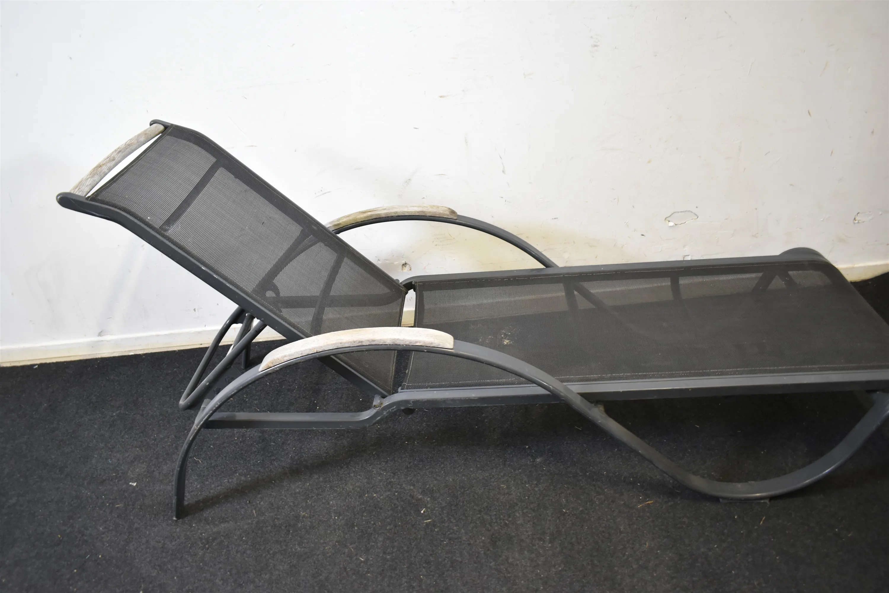 14287. Solsäng, mått nerfälld längd 196 cm, bredd 63 cm, höjd 51 cm