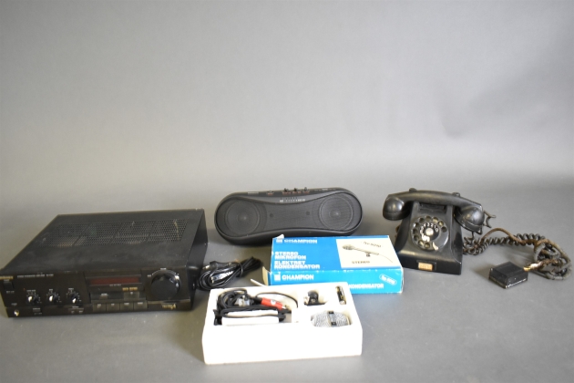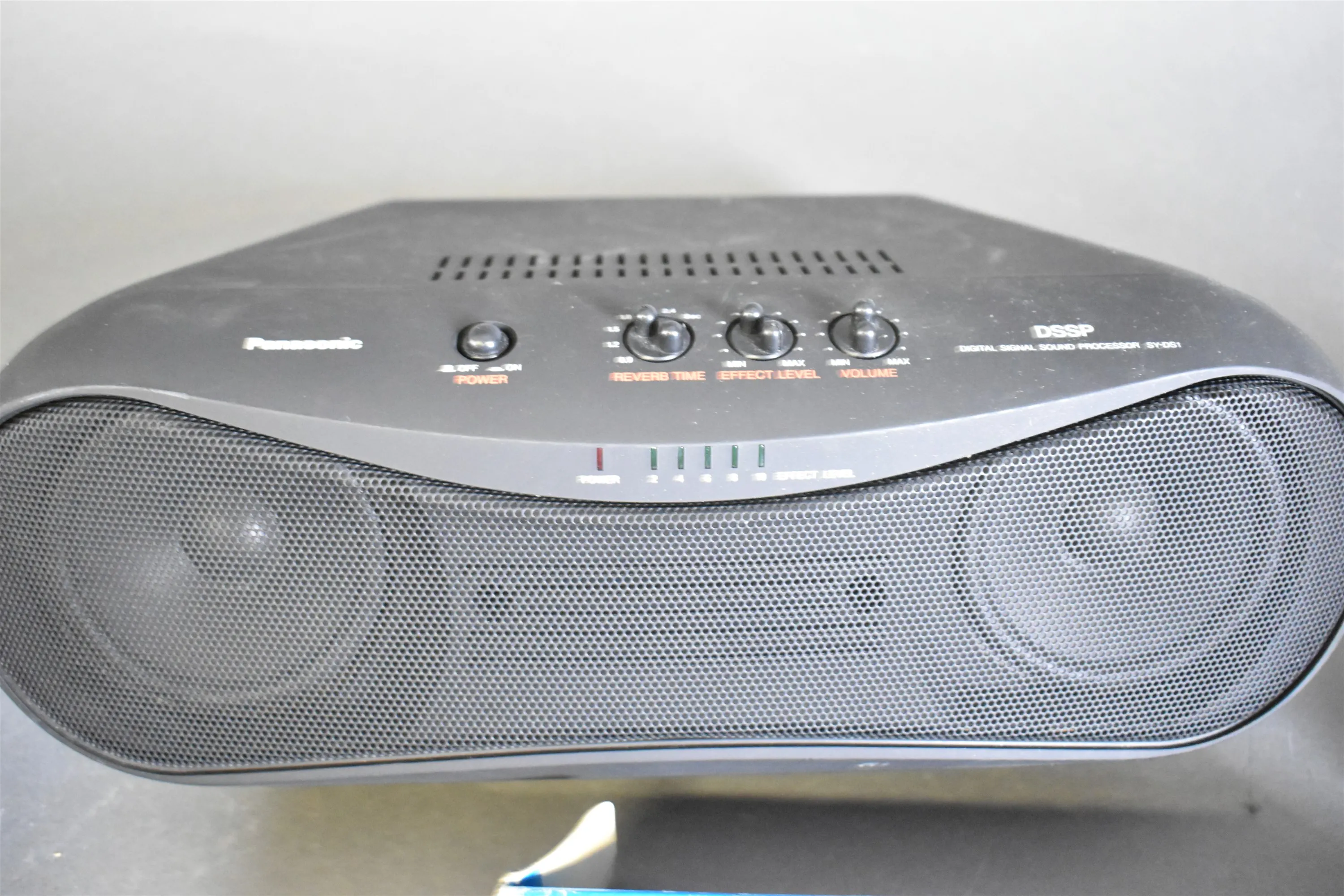 13563. Sound Processor Panasonic, Amplifier Technics, mikrofon och telefon, längsta mått 36 cm