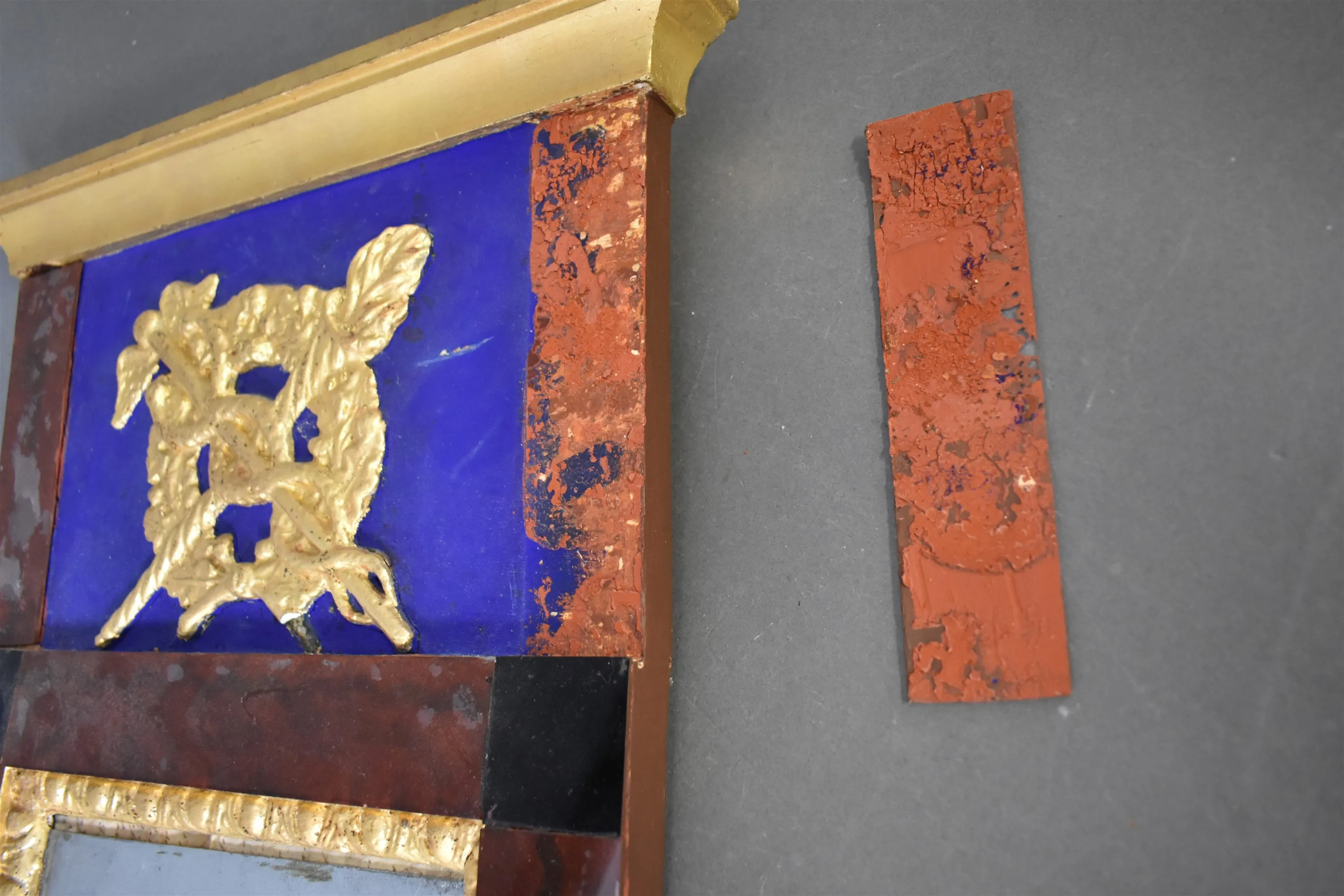 14253. Spegel, 1800-tal, senare målad, en glasbit lös, höjd 70 cm