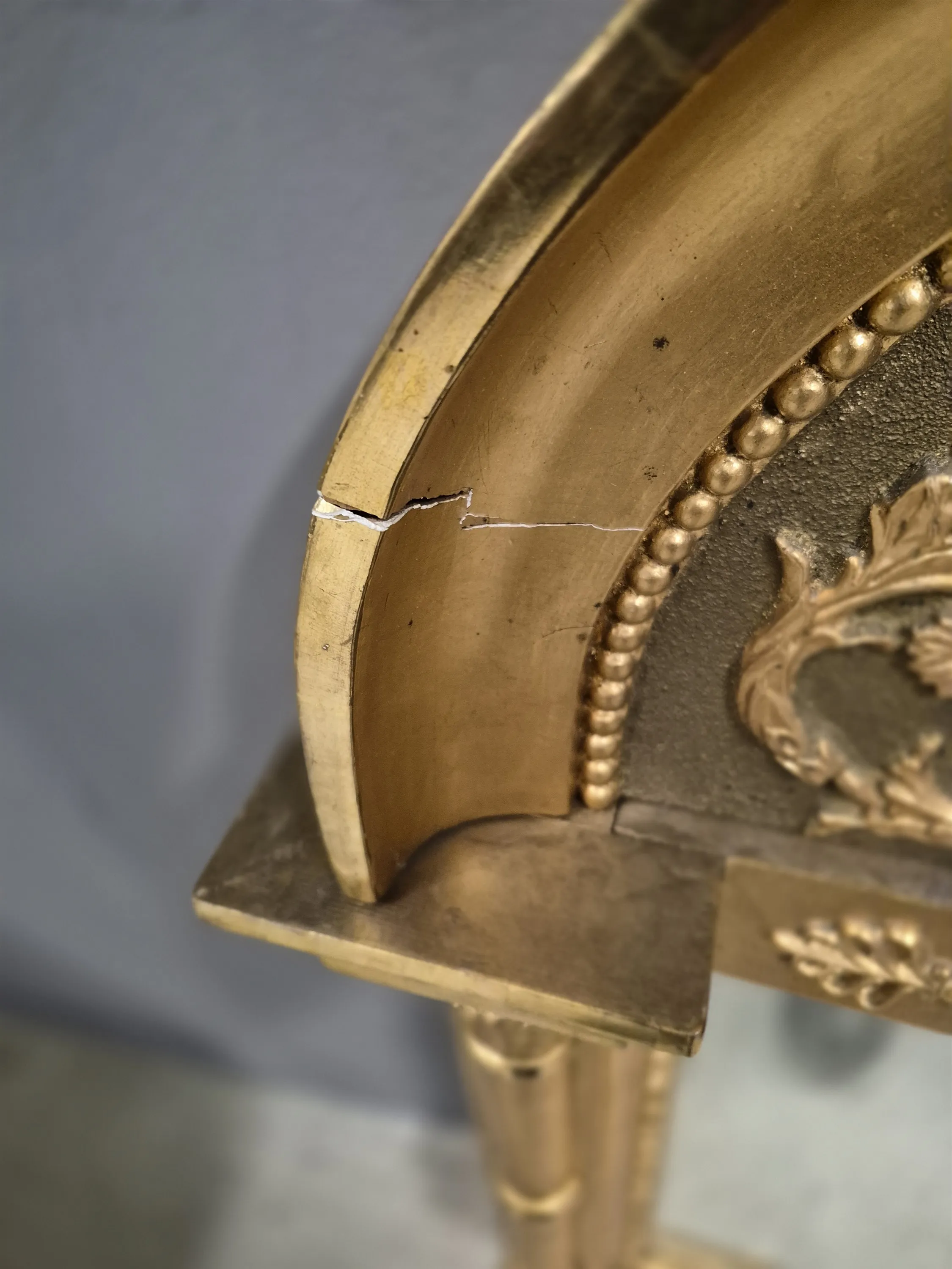 17100. Spegel förgylld, Empire höjd 100 cm, en ansiktsmaskaron saknas