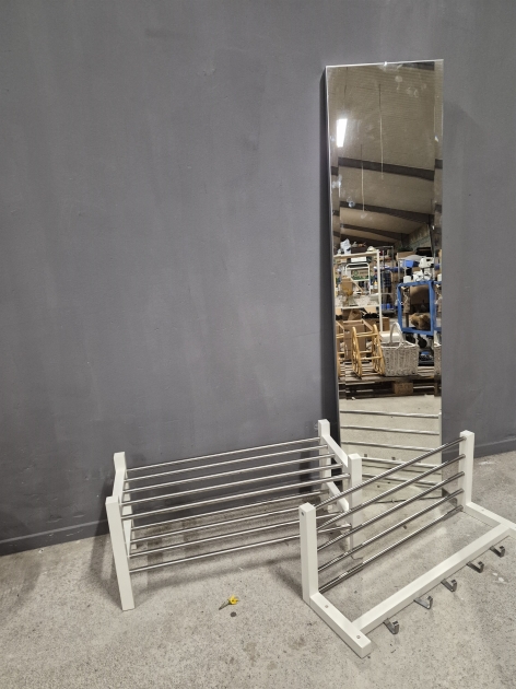 17567. Spegel hatthylla & skoställ höjd spegel 161 cm