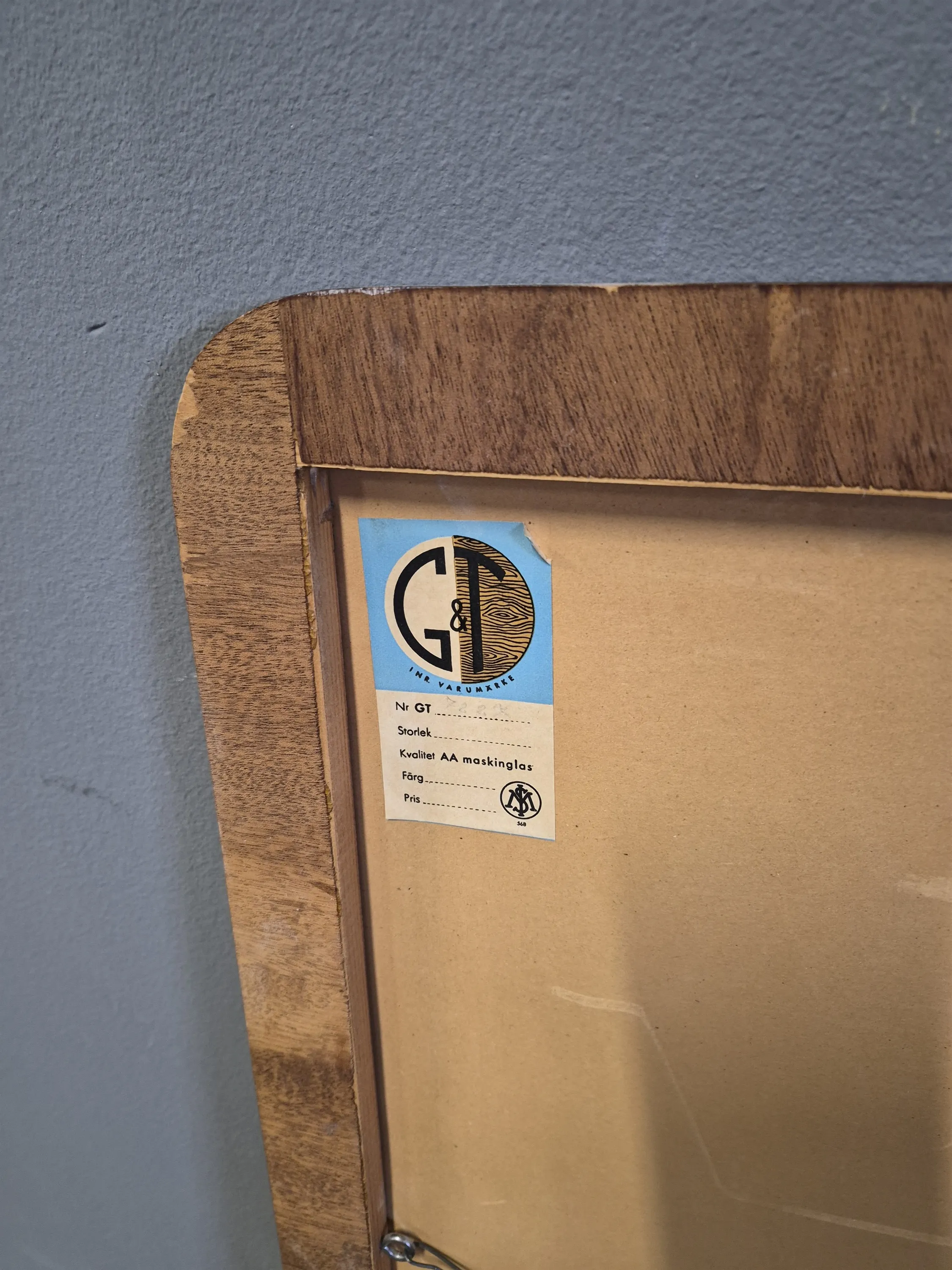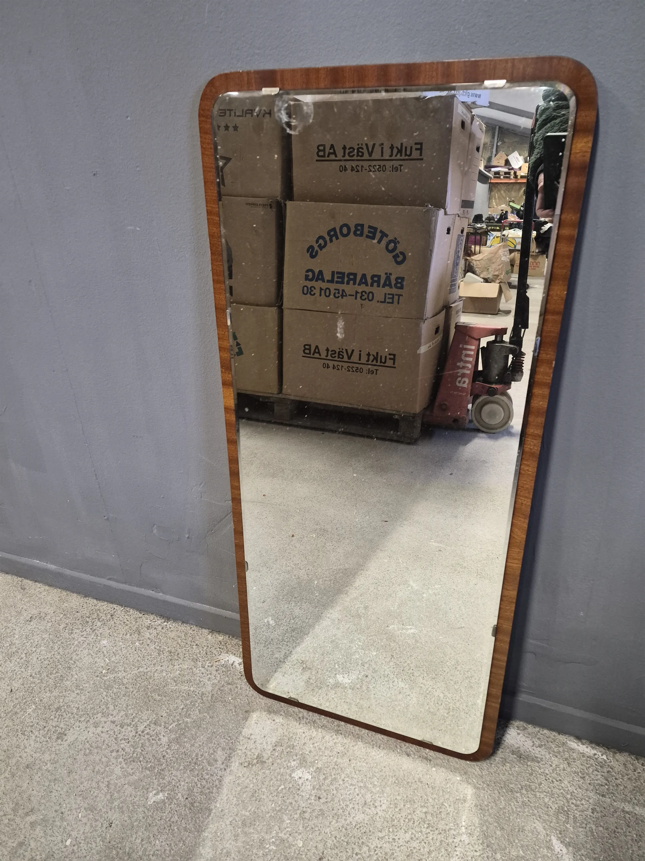 17842. Spegel, mahogny märkt G&T, mått 98 x 44 cm