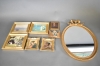 6430. Spegel med rosettkrön, småtavlor reprodukioner , höjd spegel 58 cm