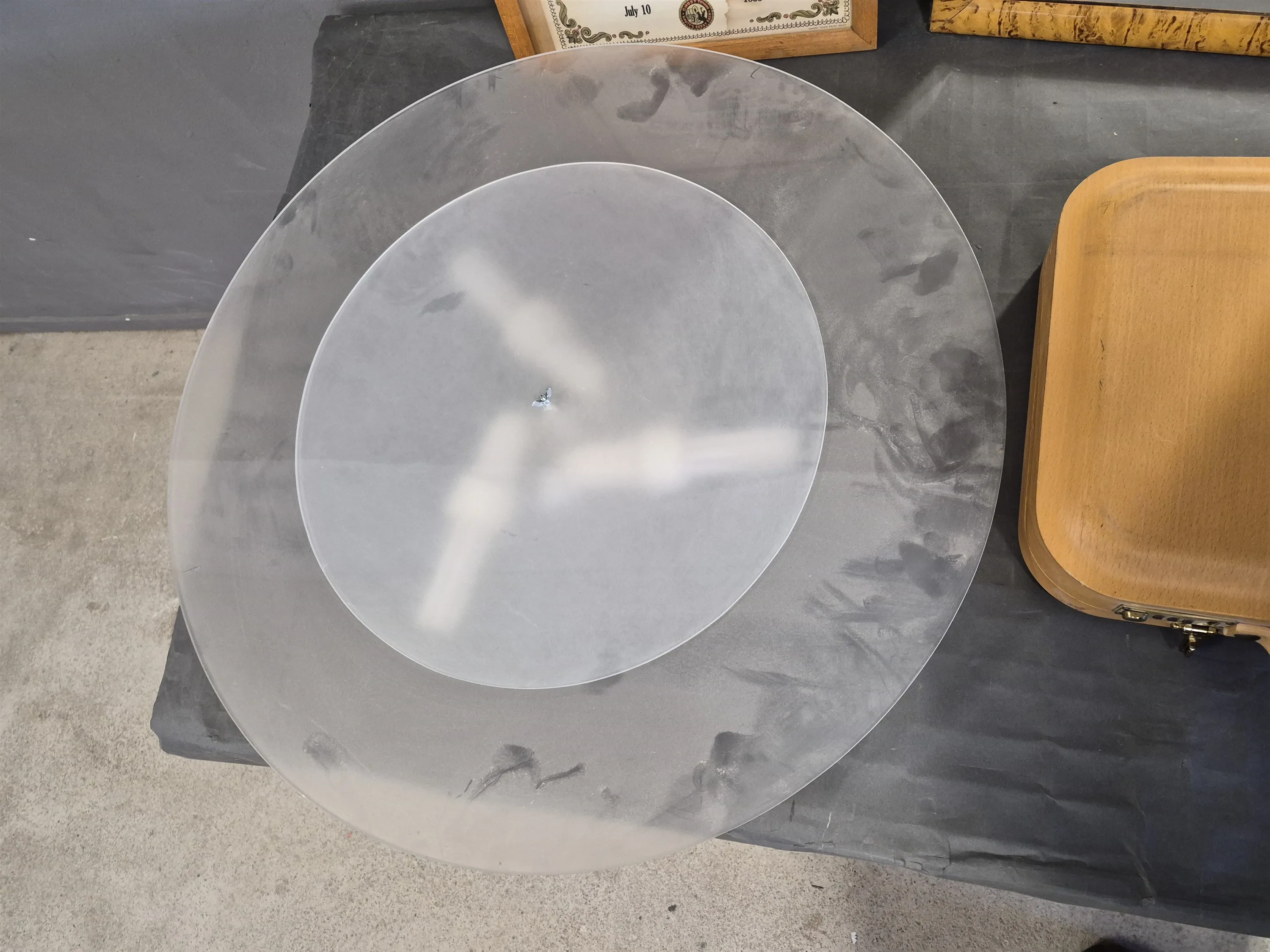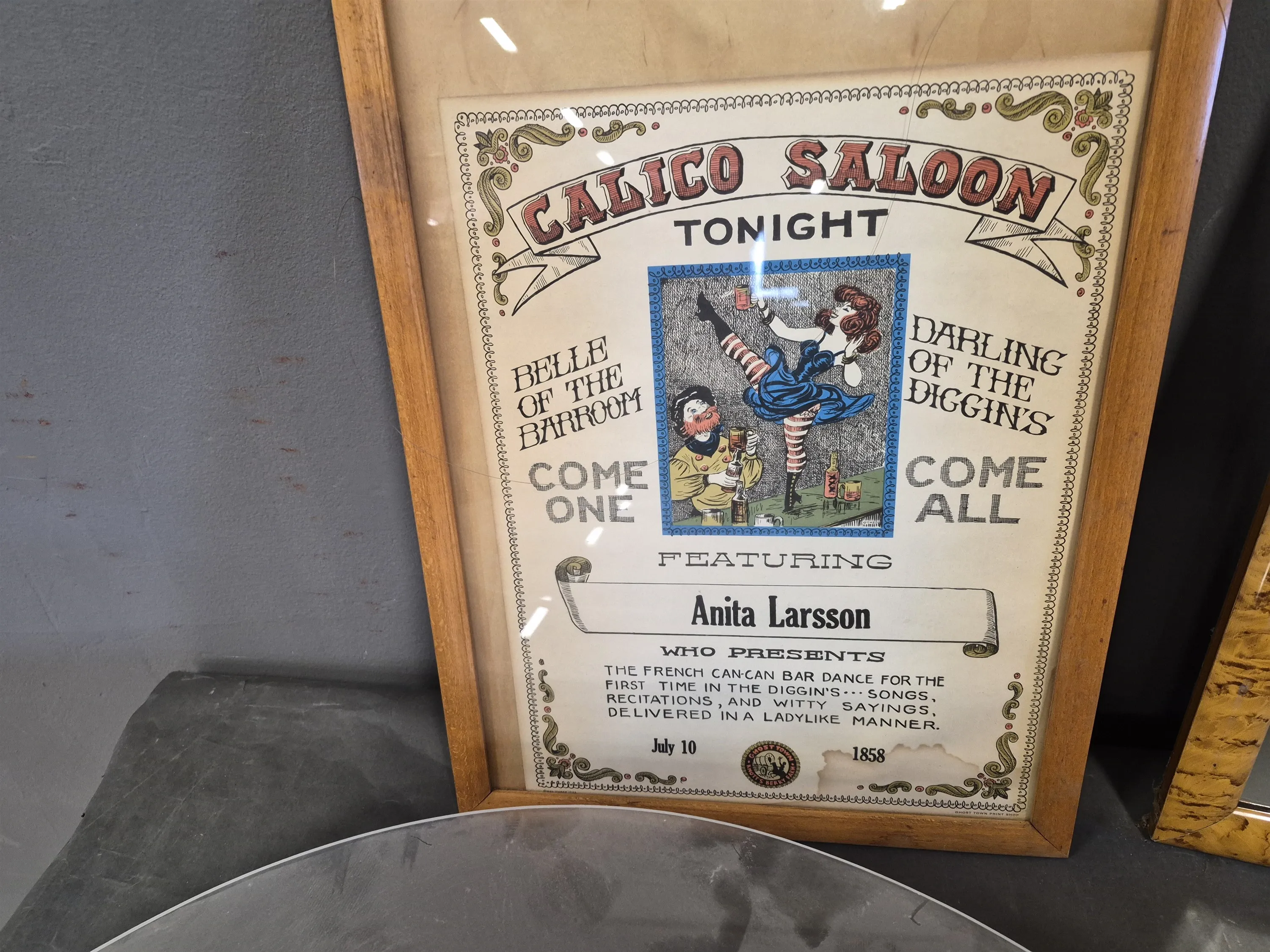 19710. Spegel, plafond, affisch & väska, diameter 73 cm