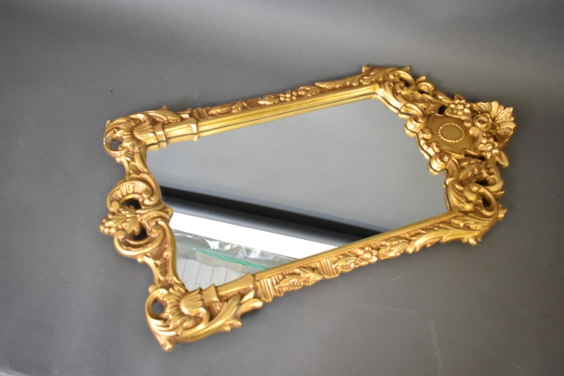 13244. Spegel rokokostil, förgylld, höjd 92 cm, bredd 50 cm