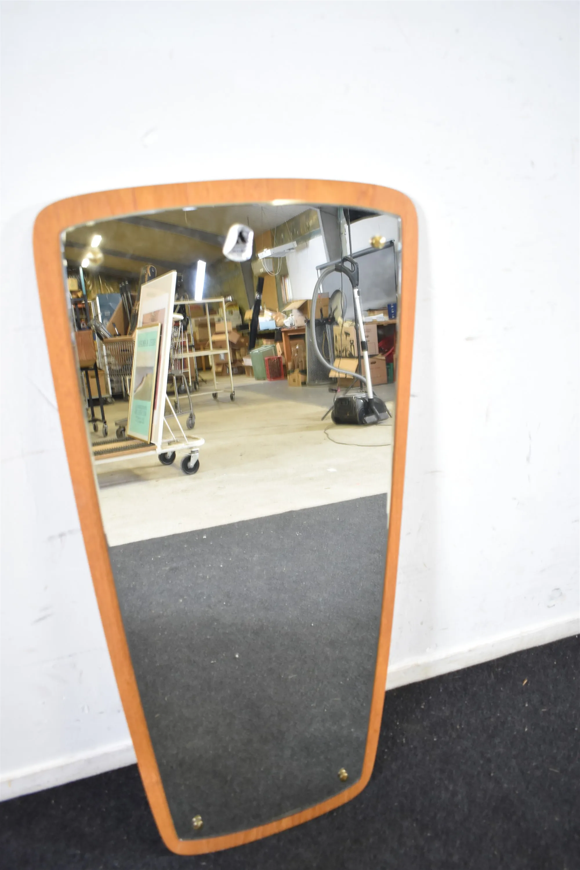 16194. Spegel, teak, Fröseke AB Nybrofabriken mått 99 x 44 cm klisterlapp finns
