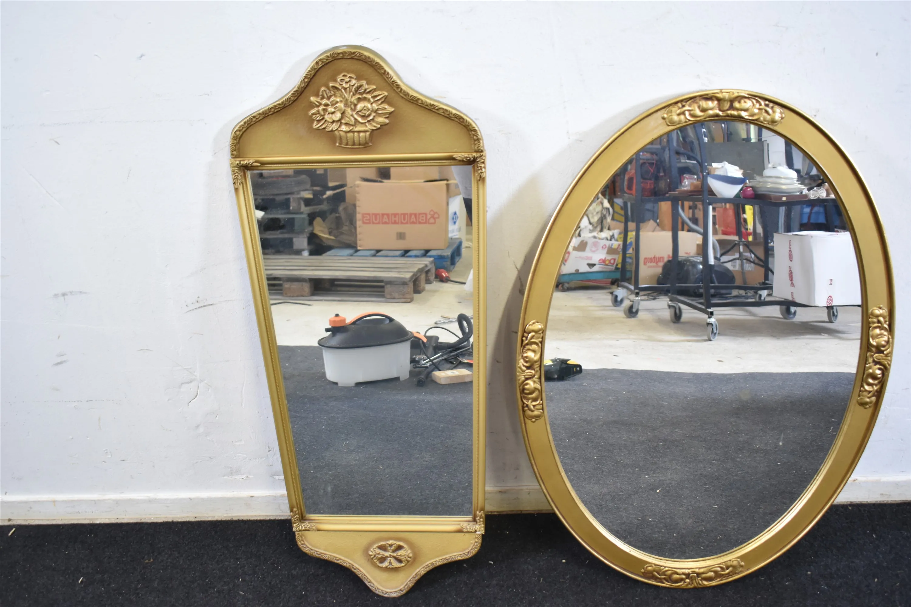 13052. Speglar 2 st, förgyllda, största mått 95x36 cm