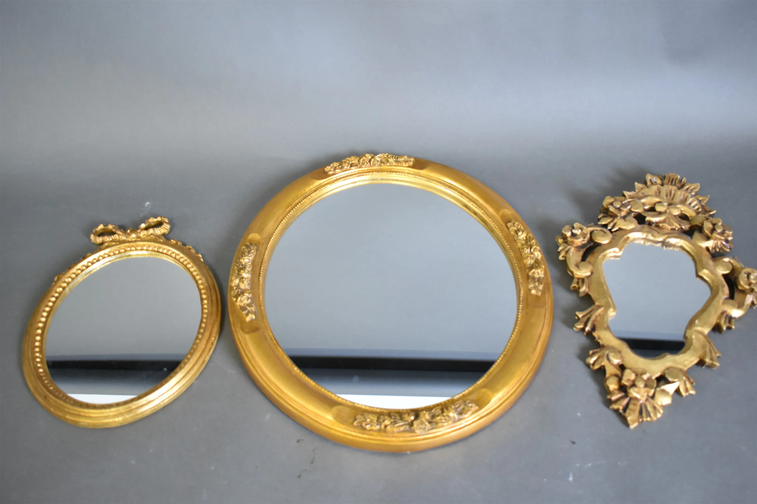 13676. Speglar 3 st, förgyllda största mått 58 cm