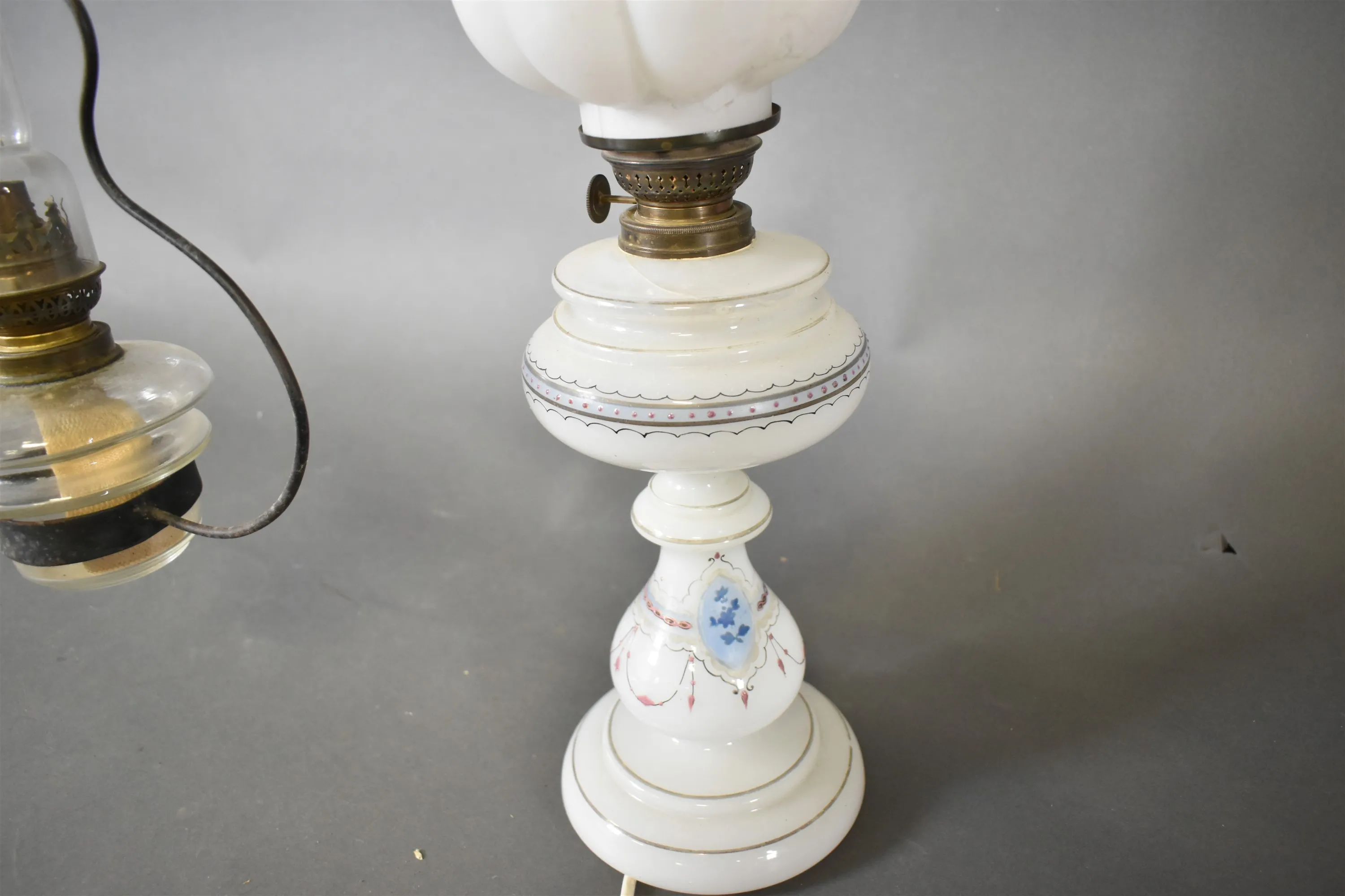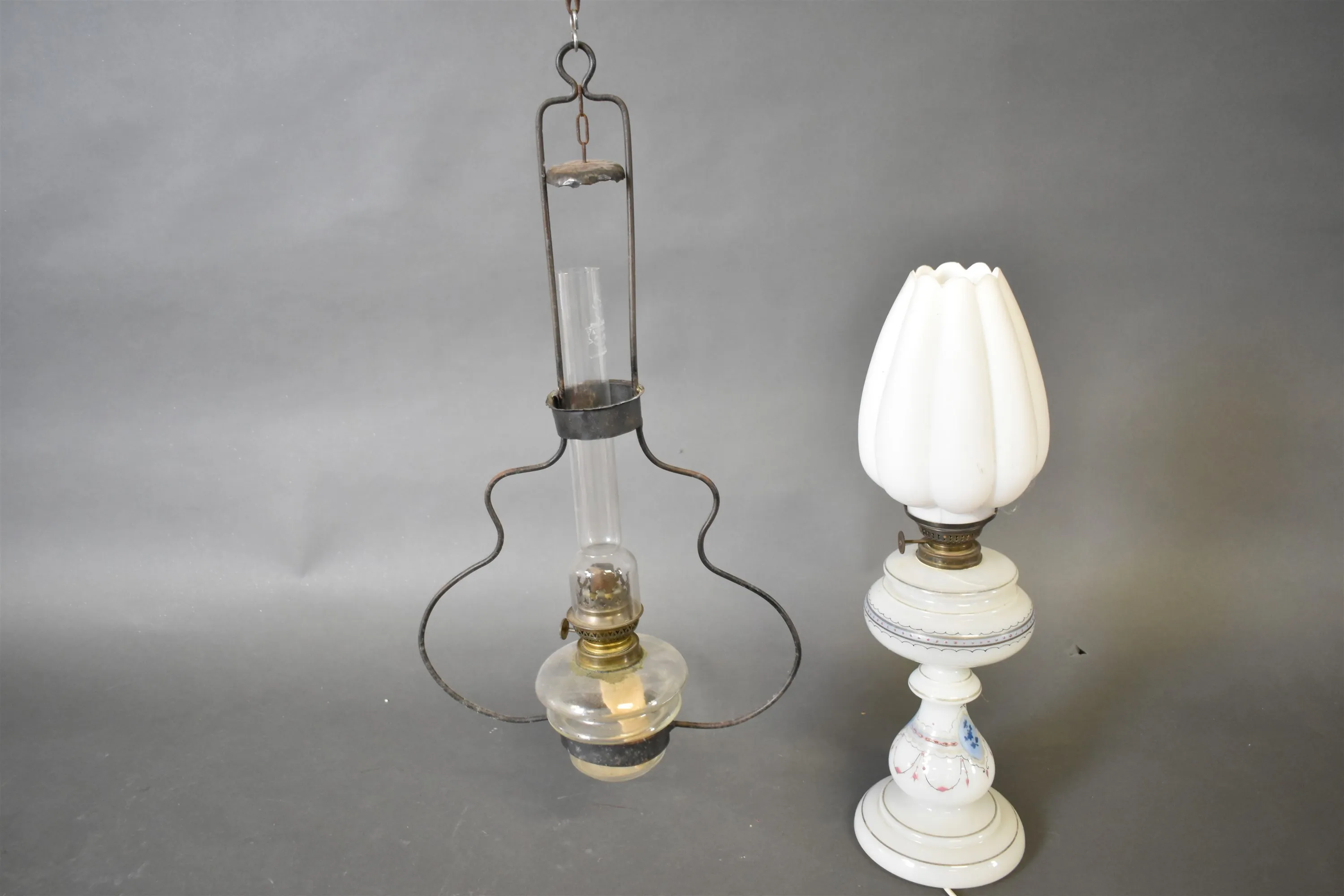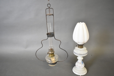 3810. Stallampa & fotogenlamp med el, högsta 53 cm