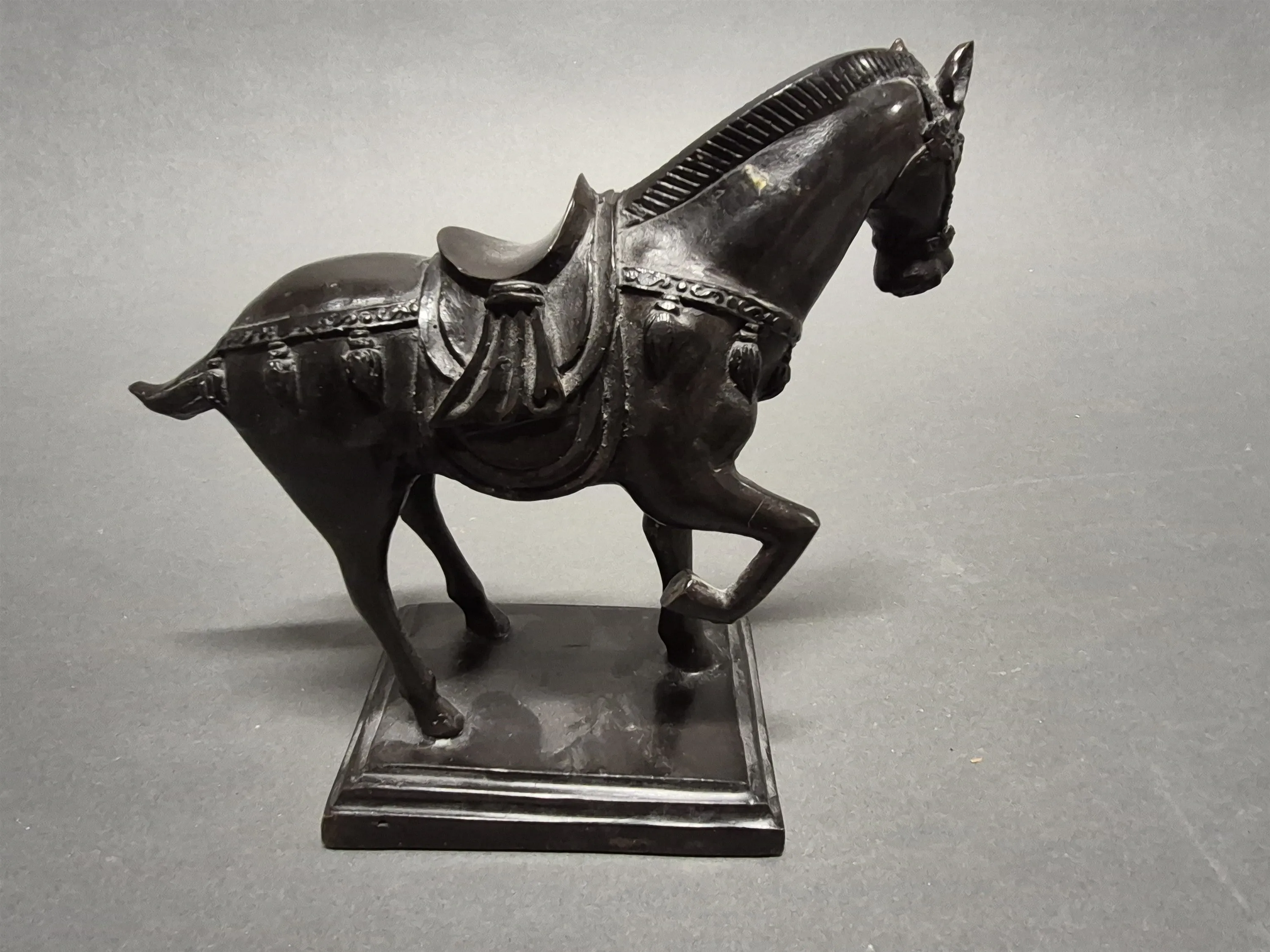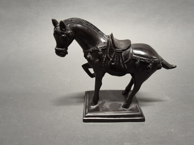 18398. Statyett, häst, gjutgods, patinerad, höjd 20 cm