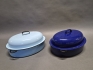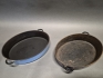 17352. Stekgrytor Kockums 2 st, emaljerat gjutjärn, längsta mått 36 cm