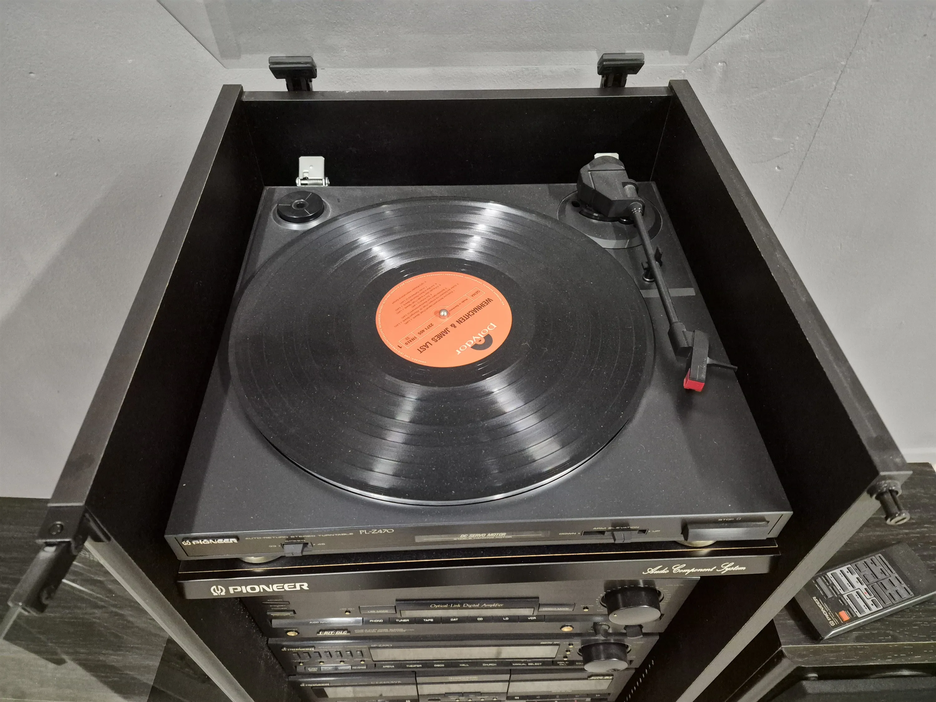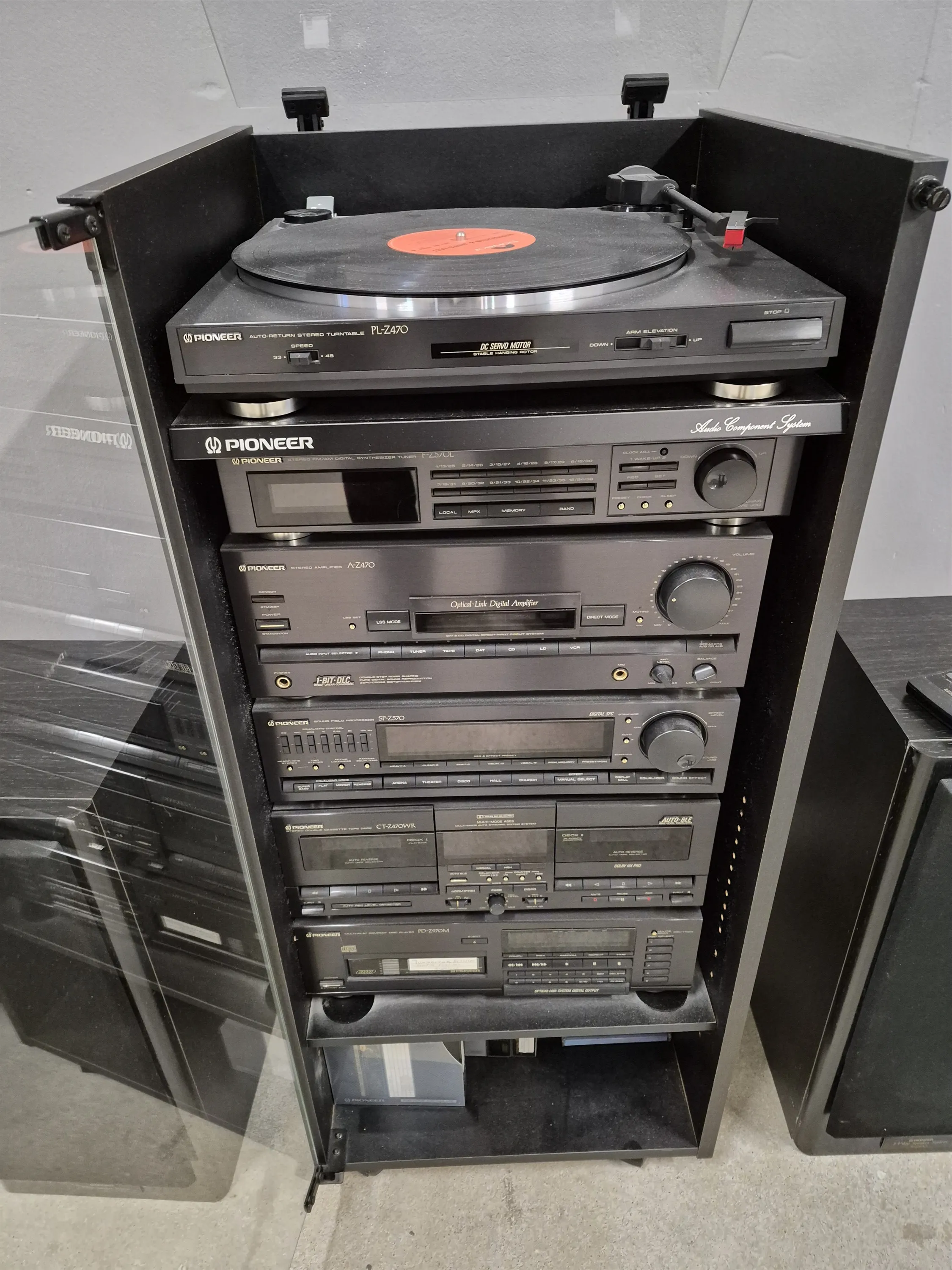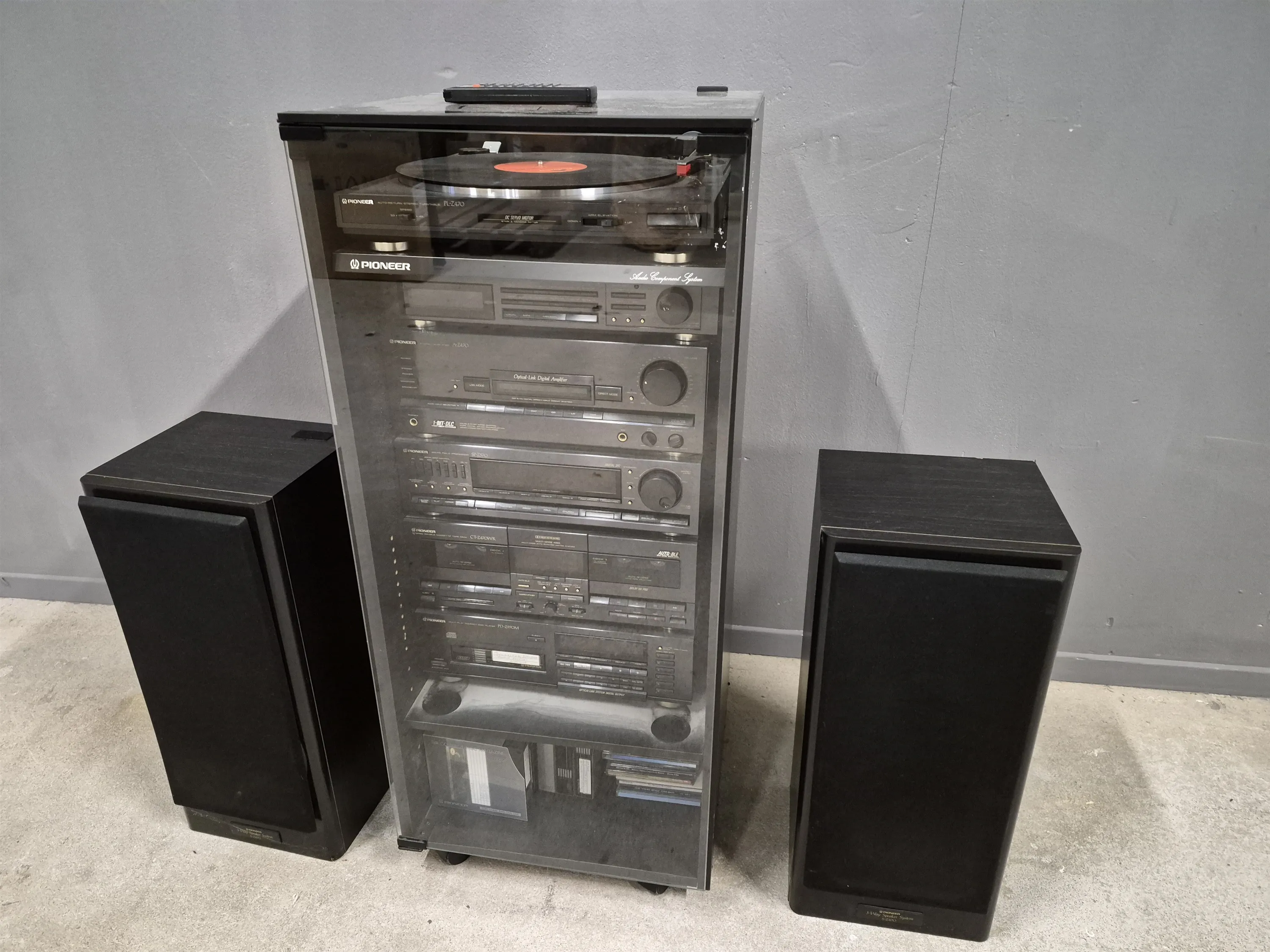 17991. Stereo i rack med högtalare, Pioneer, fjärrkontroll, ej testad höjd 98 cm