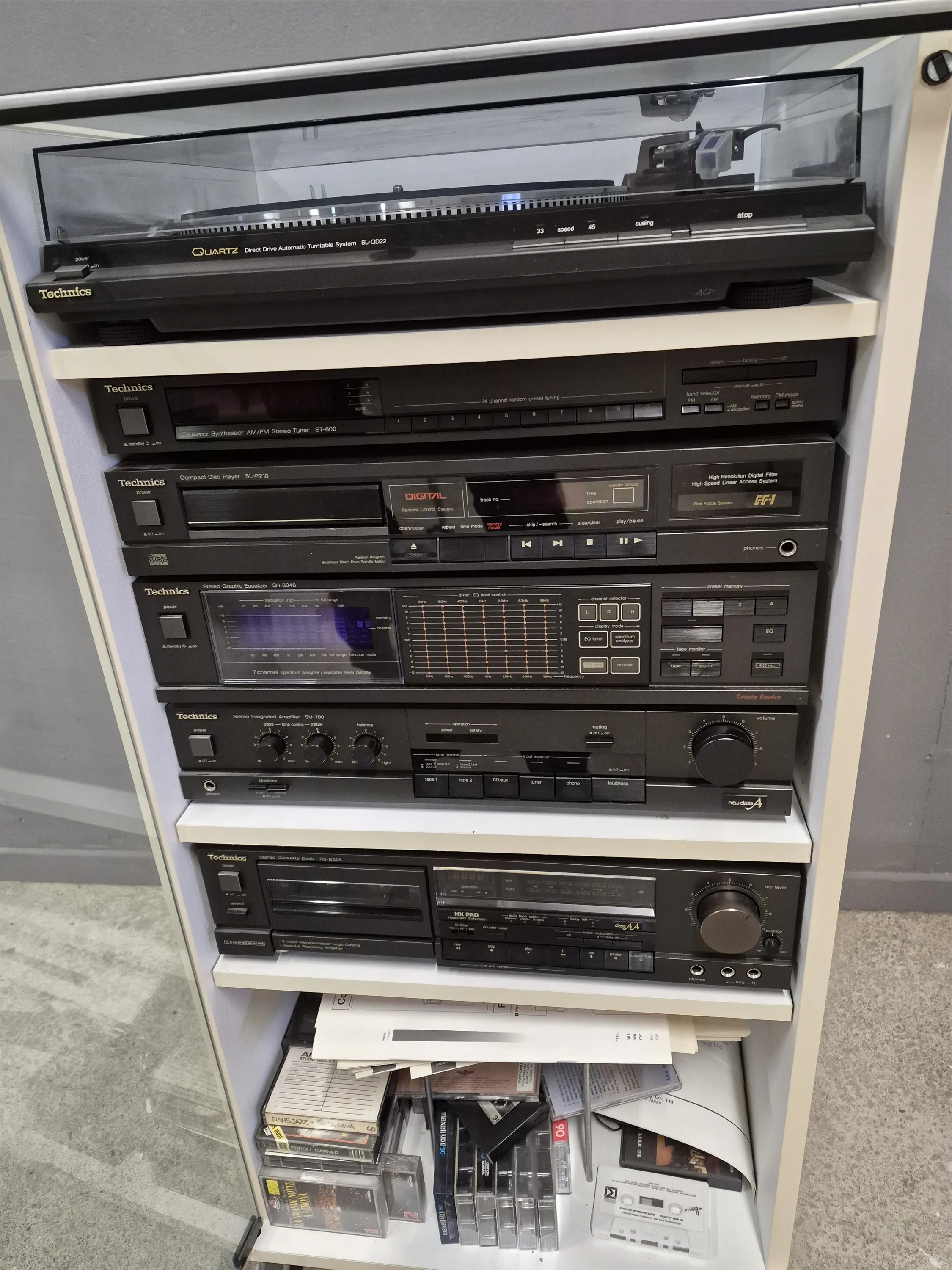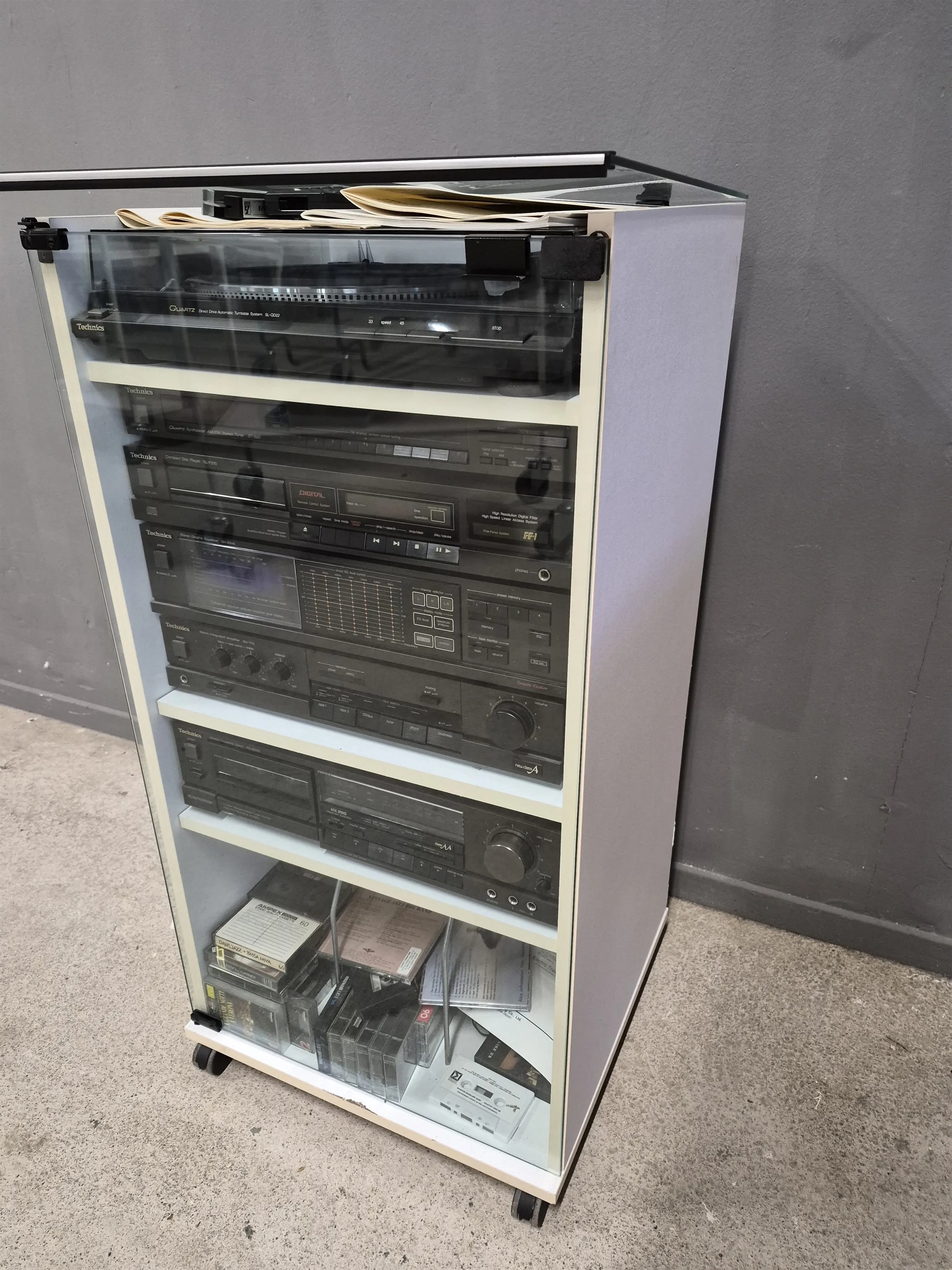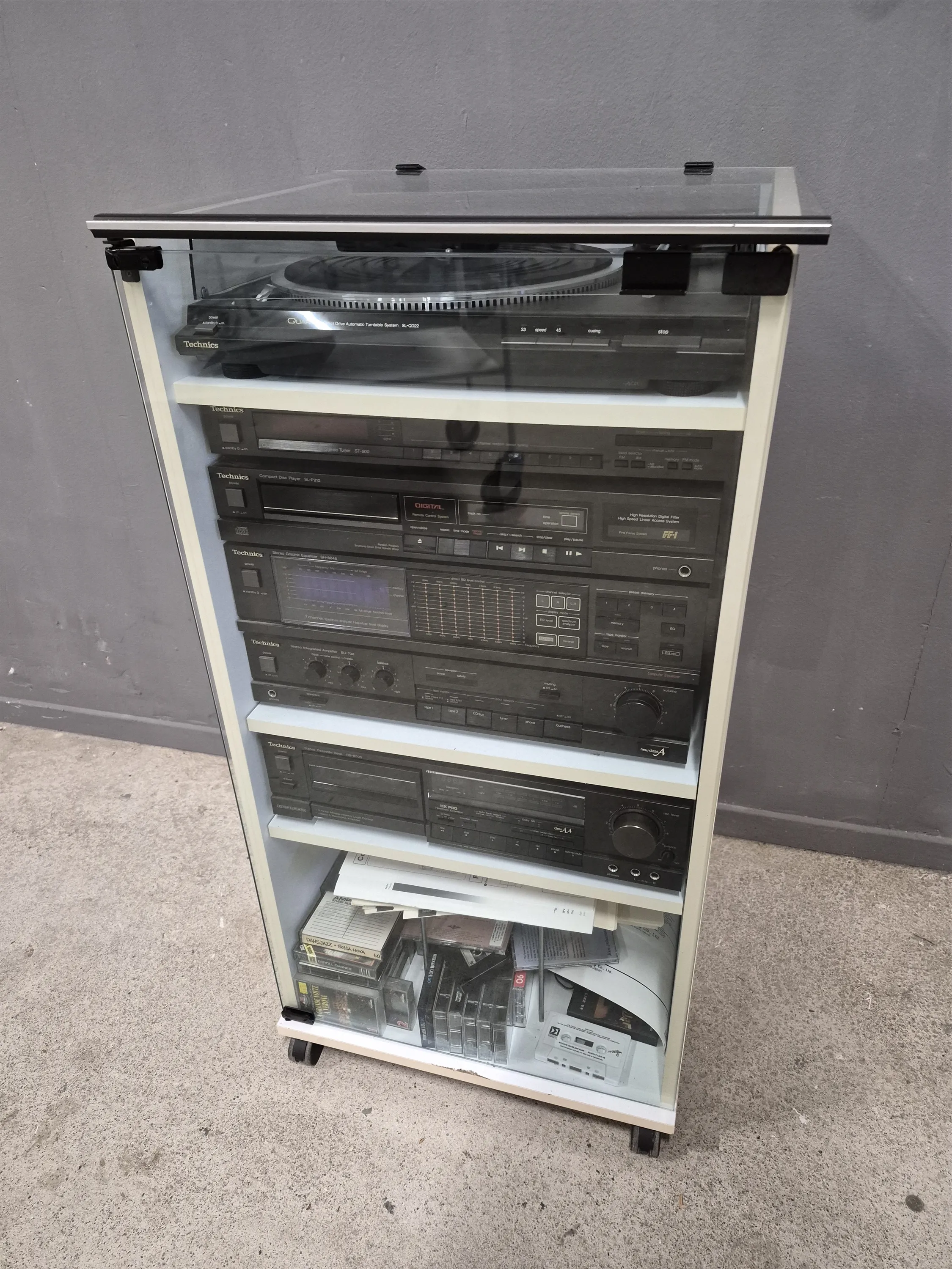 18660. Stereo i rack, Technics, fjärrkontroll, höjd 96 cm