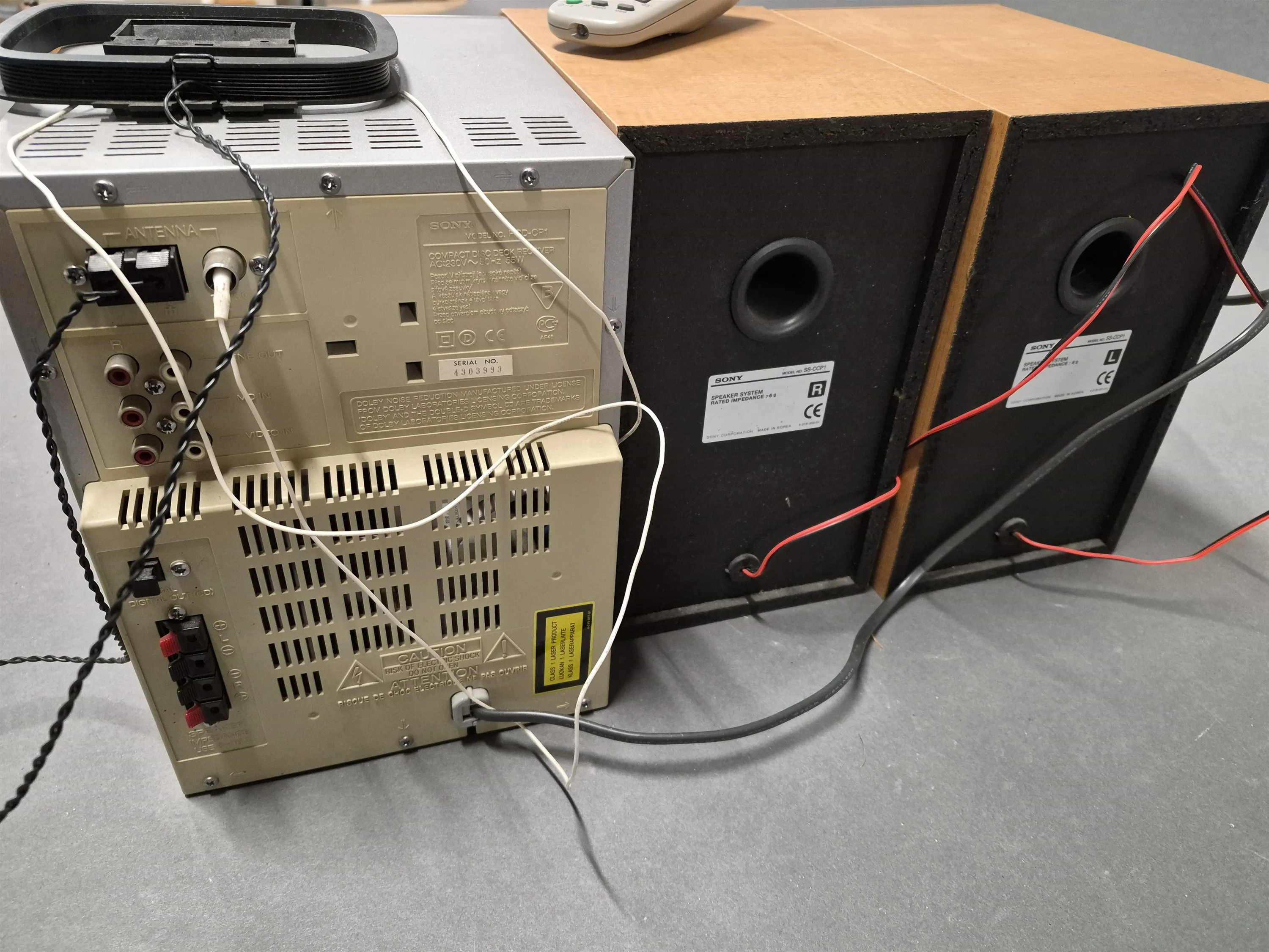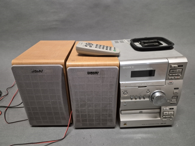 18555. Stereo med fjärr & högtalare Sony höjd 26 cm