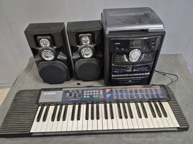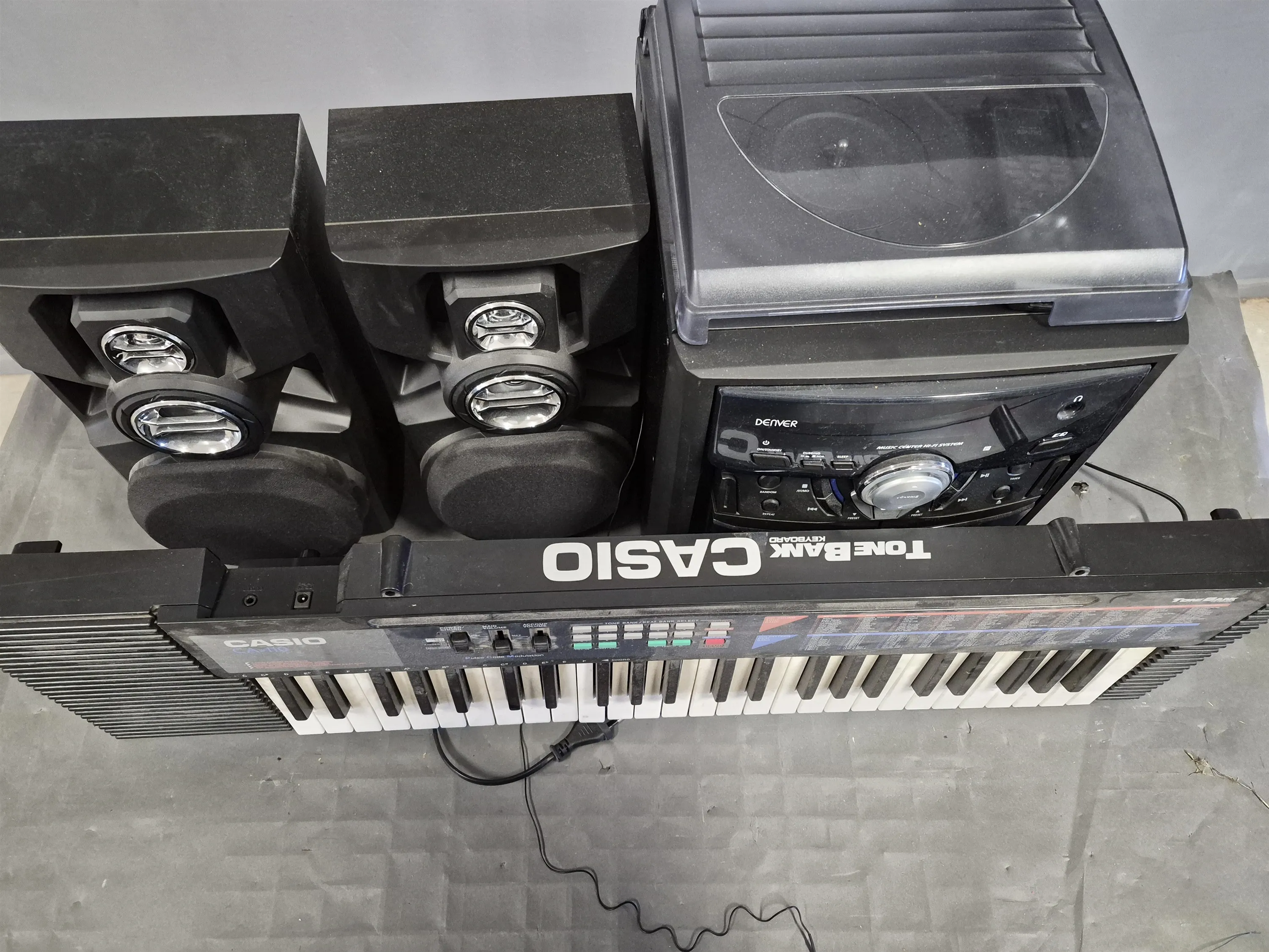 19696. Stereo med högtalare Denver & Keyboard Casio ej sladd längd 87 cm