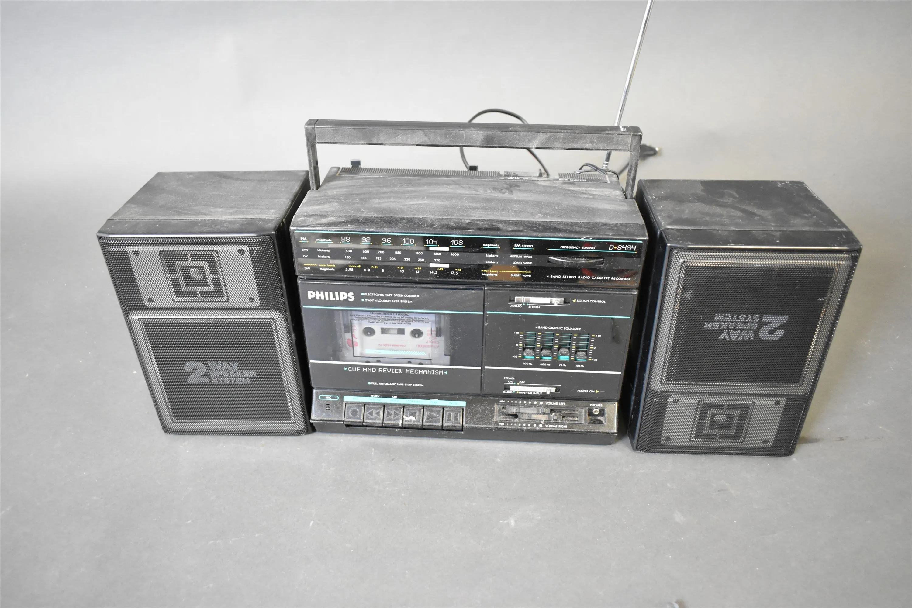 7351. Stereo med högtalare, Philips höjd 25 cm, funktionsgaranti