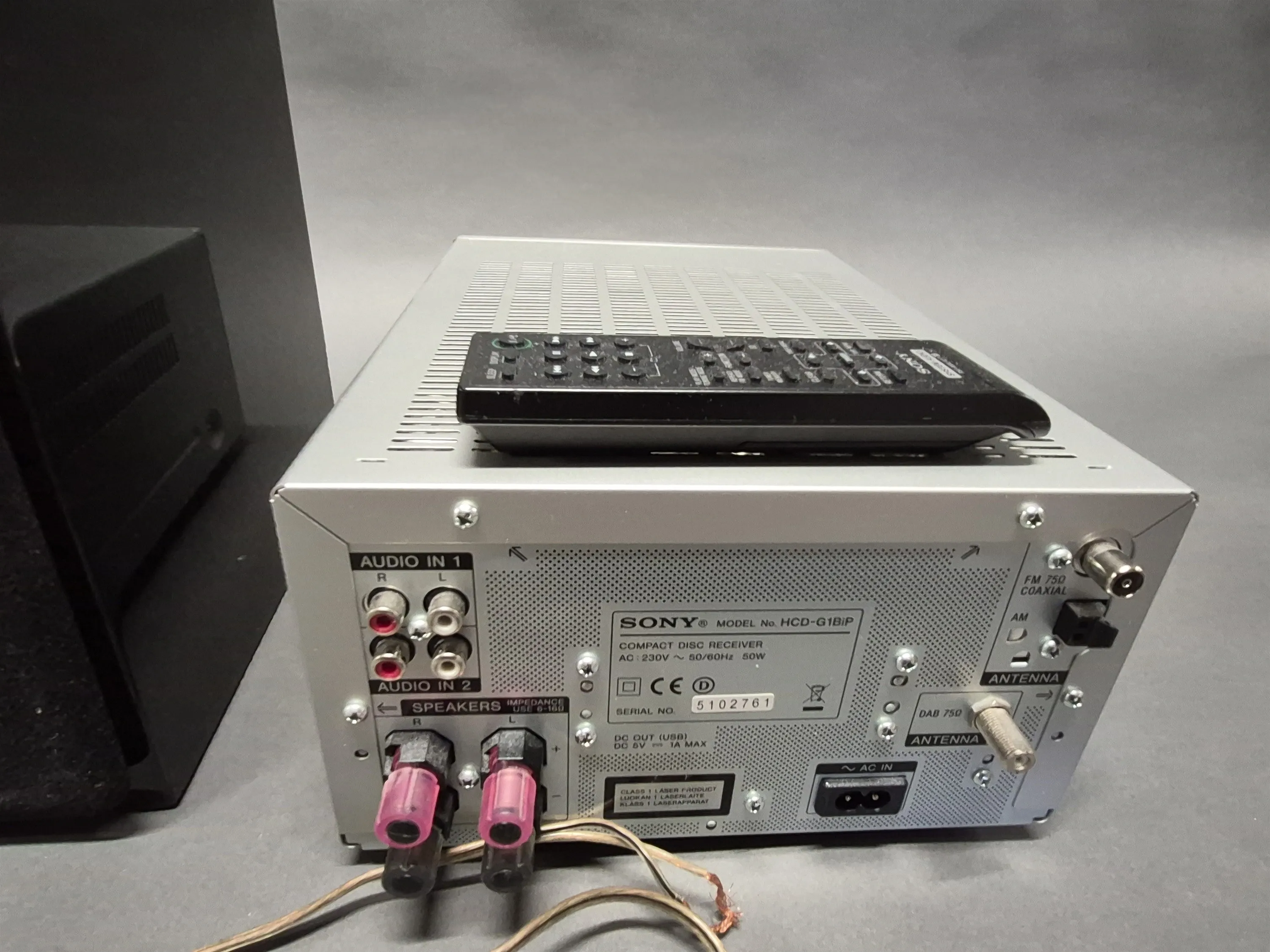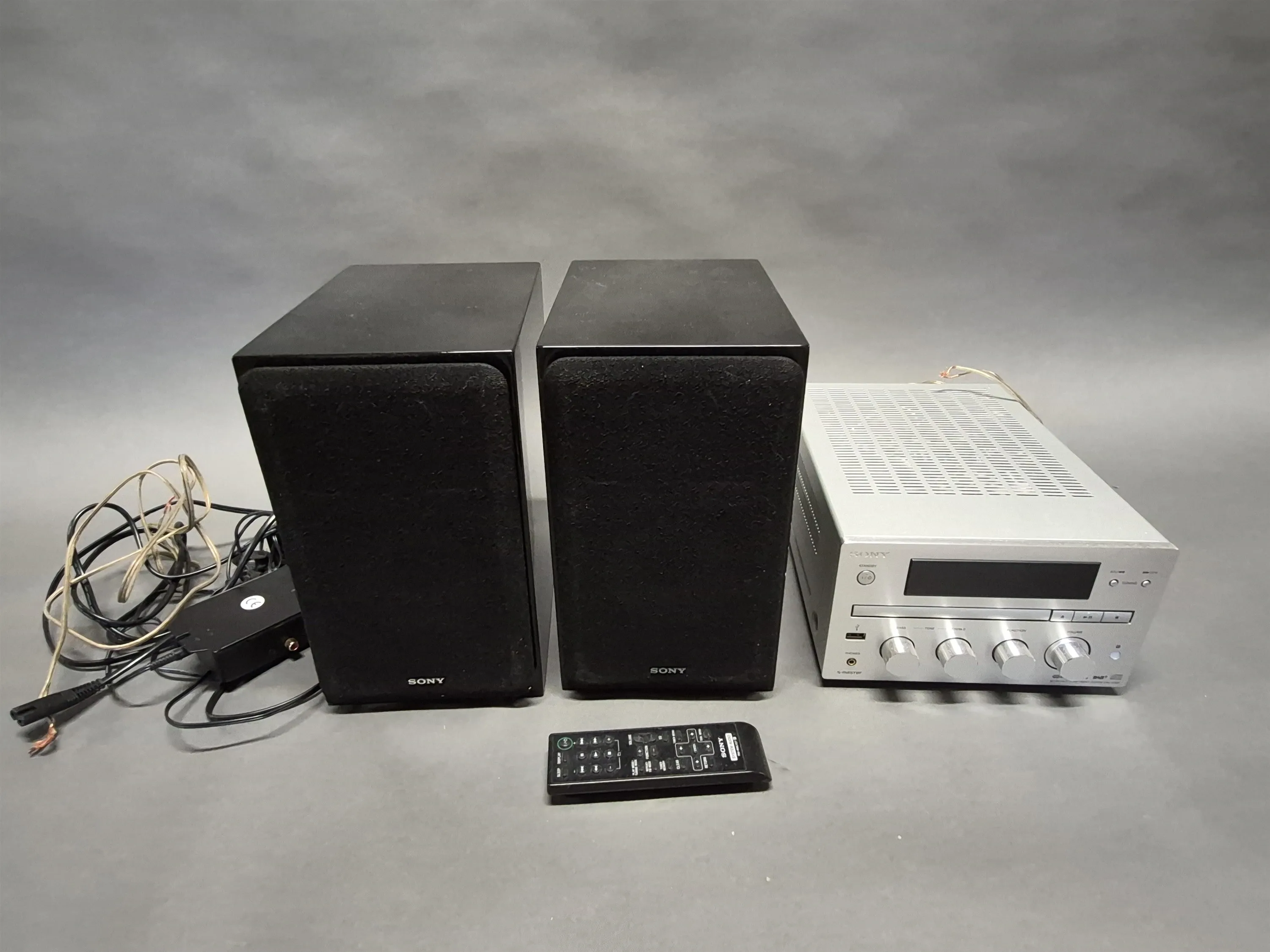 16968. Stereo med högtalare, Sony höjd 28 cm