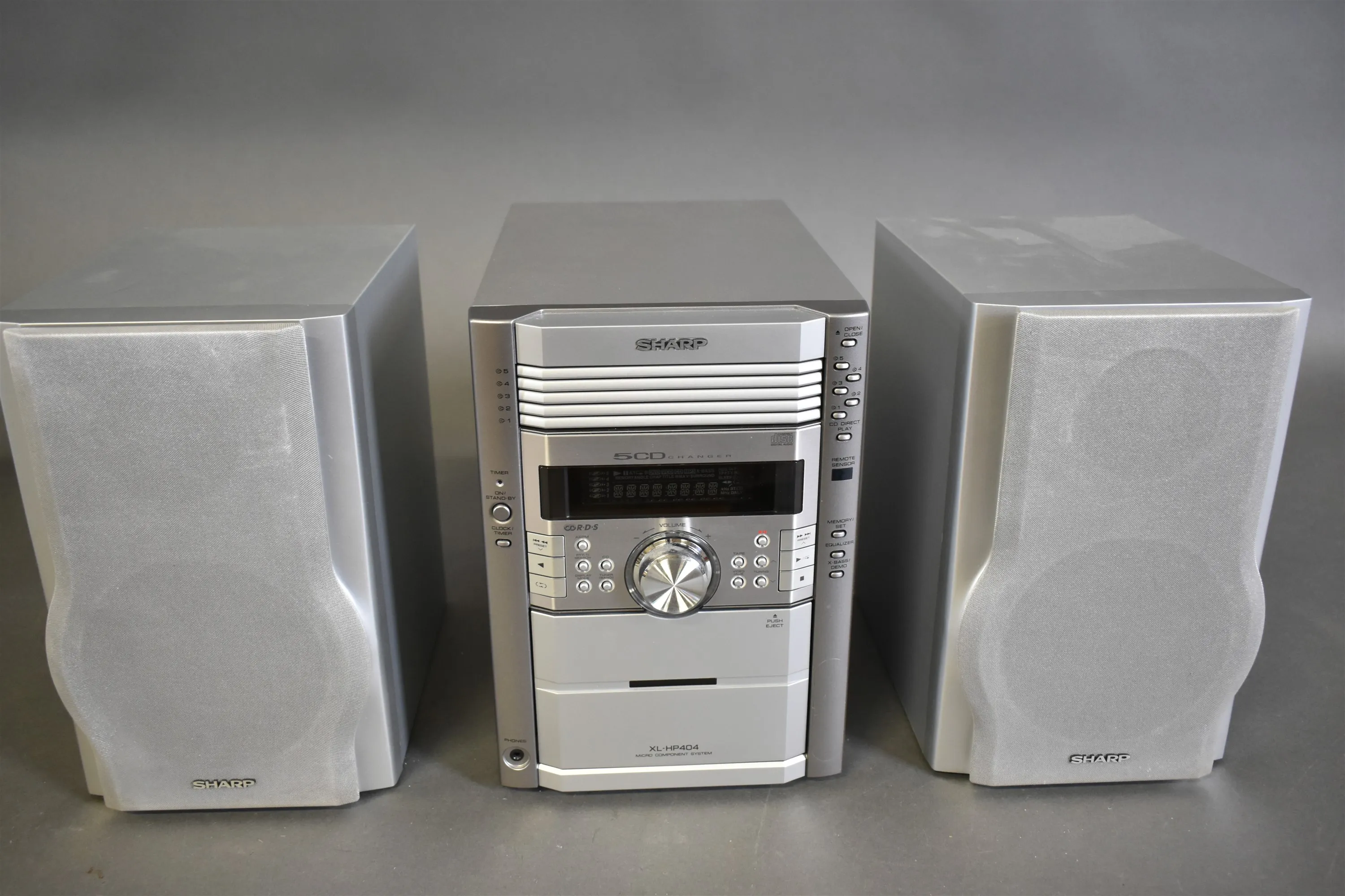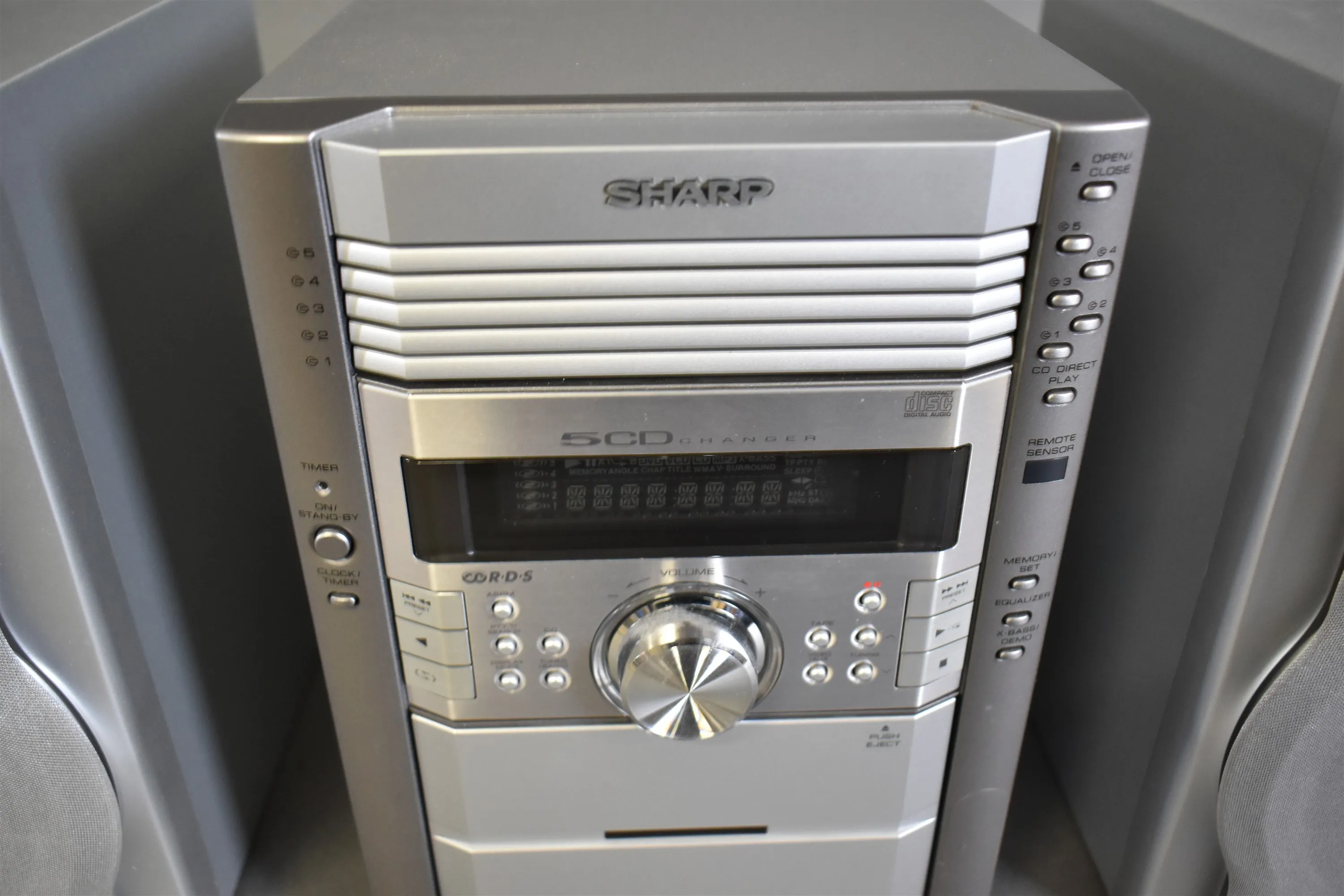 16283. Stereo Sharp med högtalare, 3 delar, höjd 26 cm