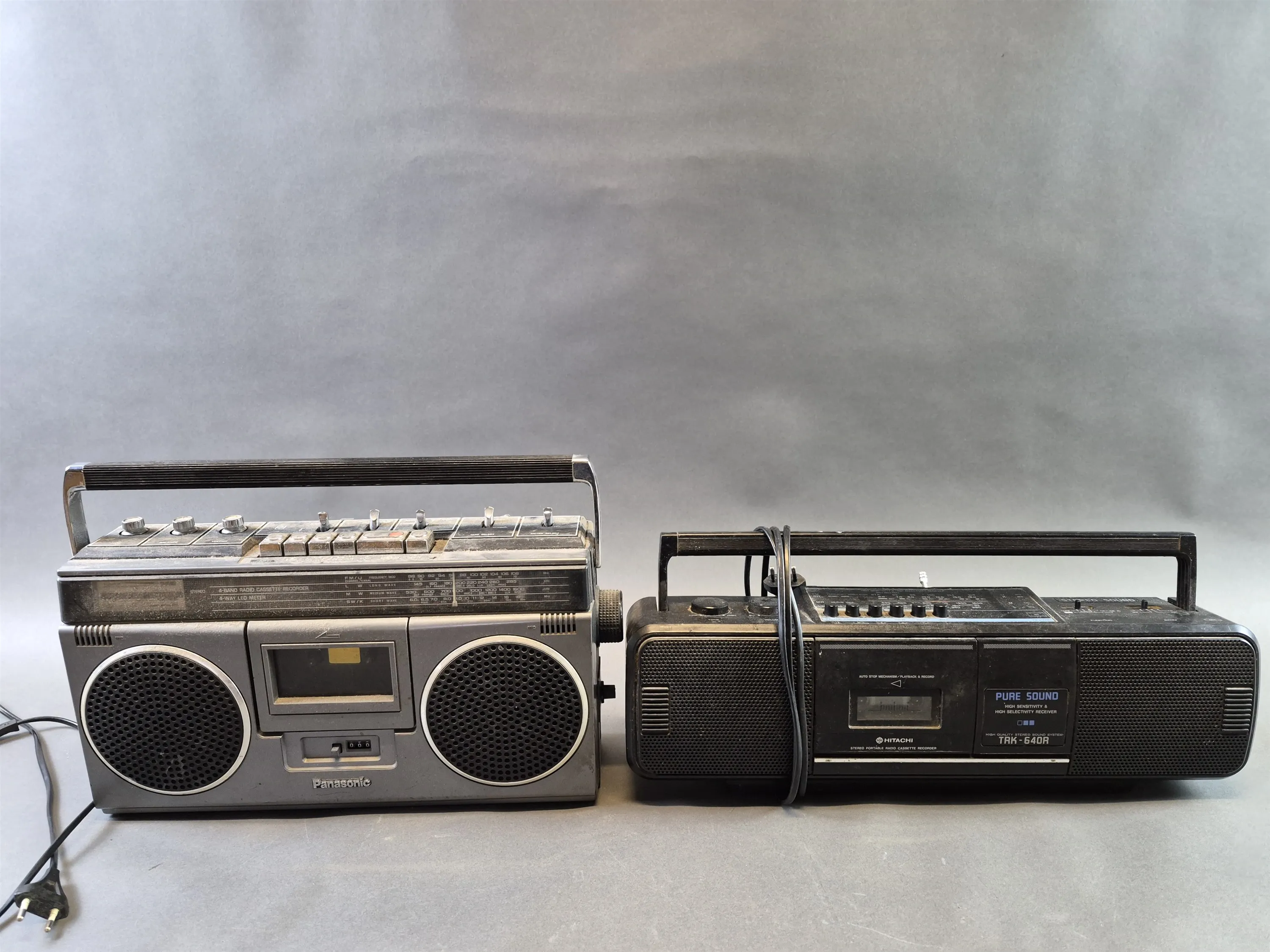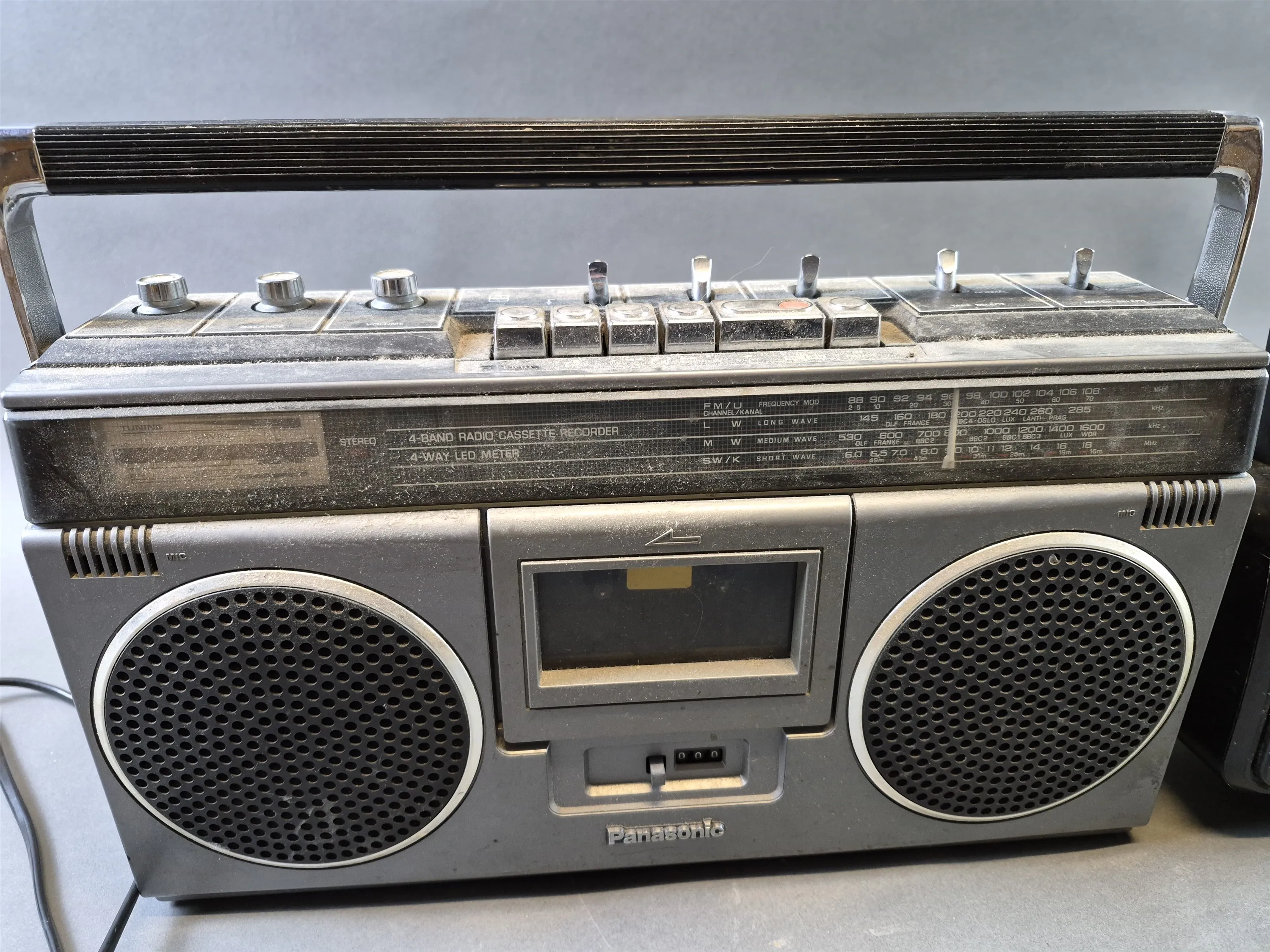 19993. Stereos 2 st bla Panasonic, smutsiga, ej testade, längsta mått 48 cm