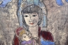 6787. Stig Egon Nordlander olja på duk, "Kvinna med barn & duvor", mått 86 x 106 cm