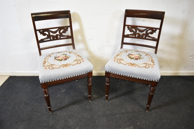 14761. Stolar 1 par sent 1800-tal, broderad sits, höjd 87 cm