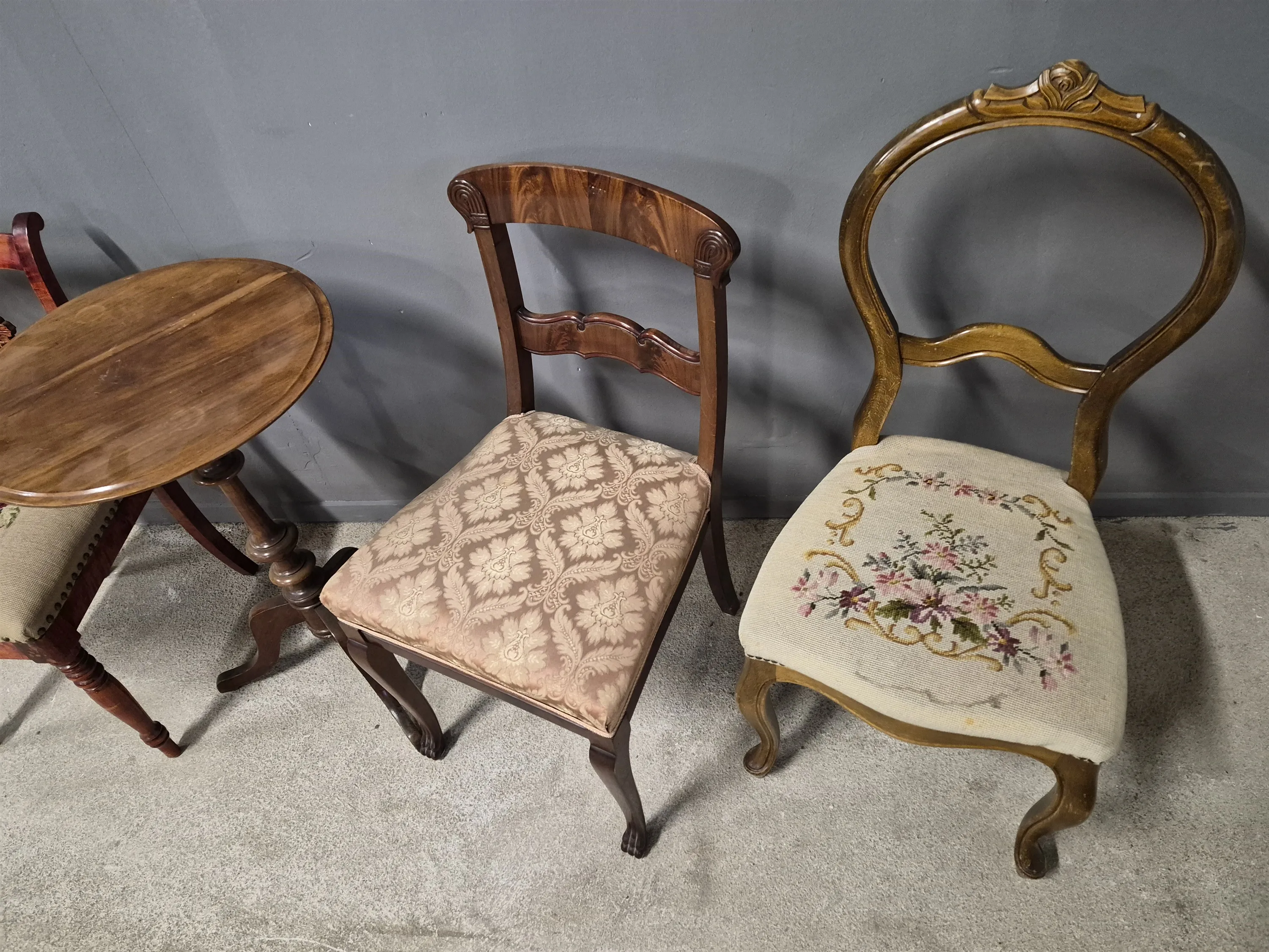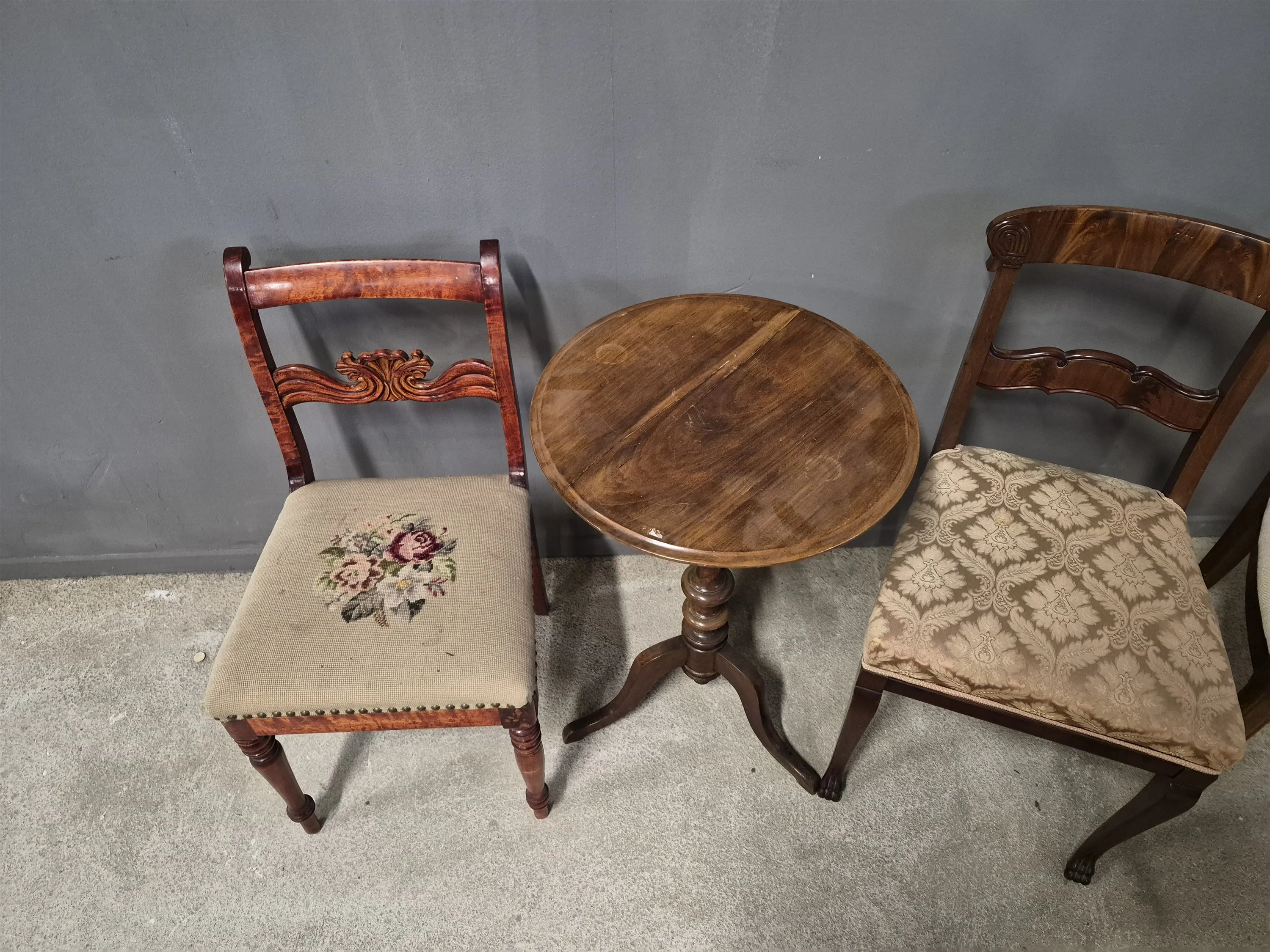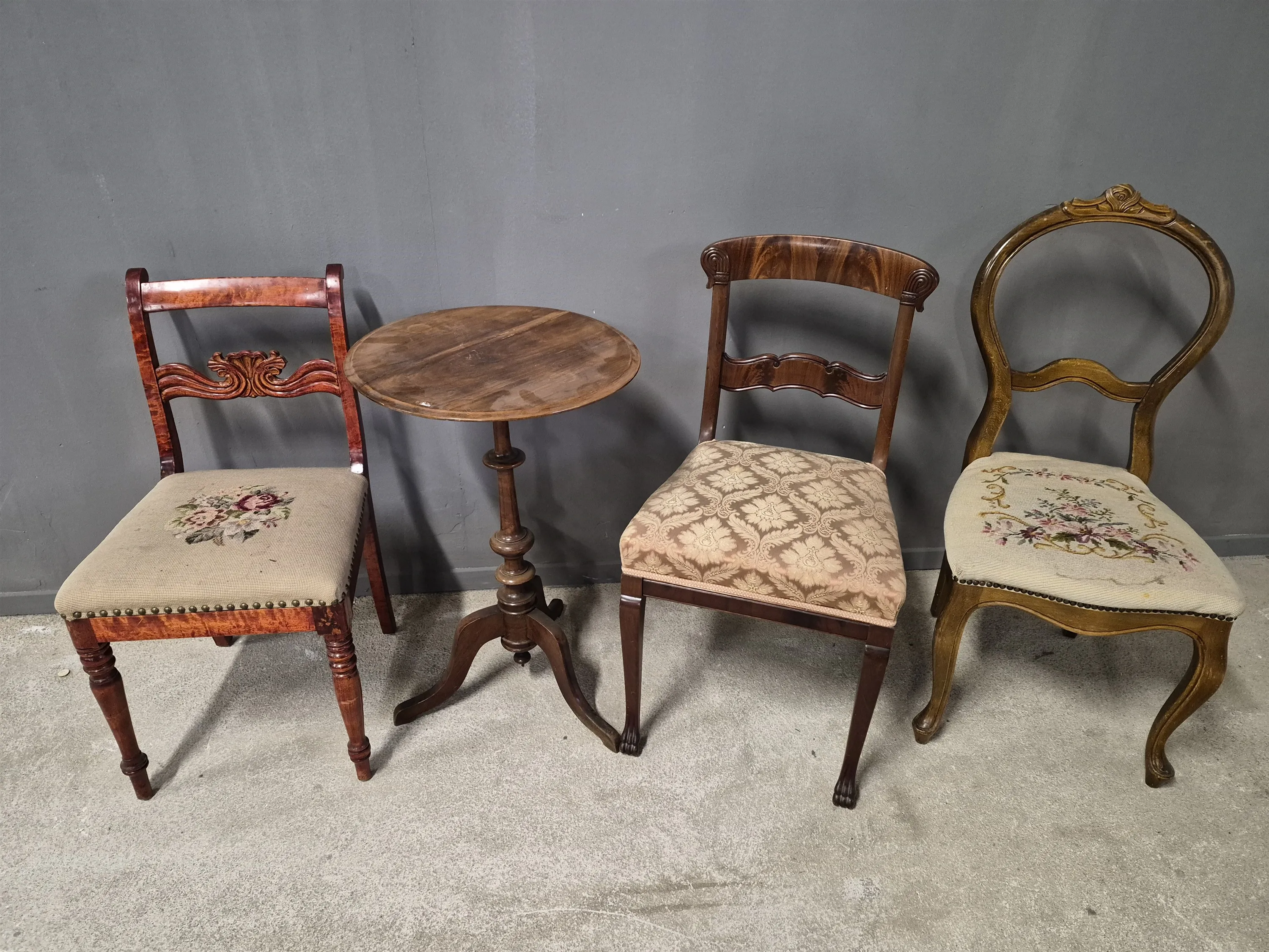 17090. Stolar 3 st & pelarbord högsta 93 cm